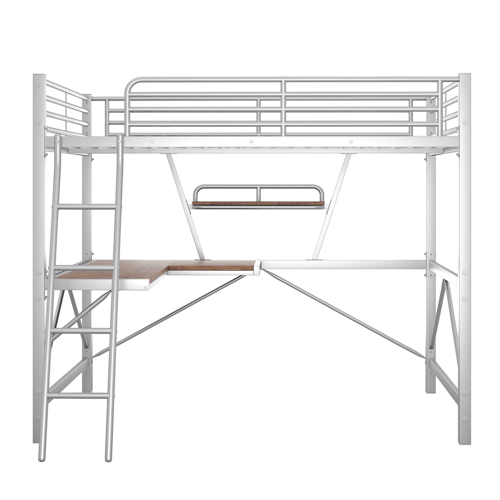 Full Size Loft Bed With Desk And Shelf - Silver