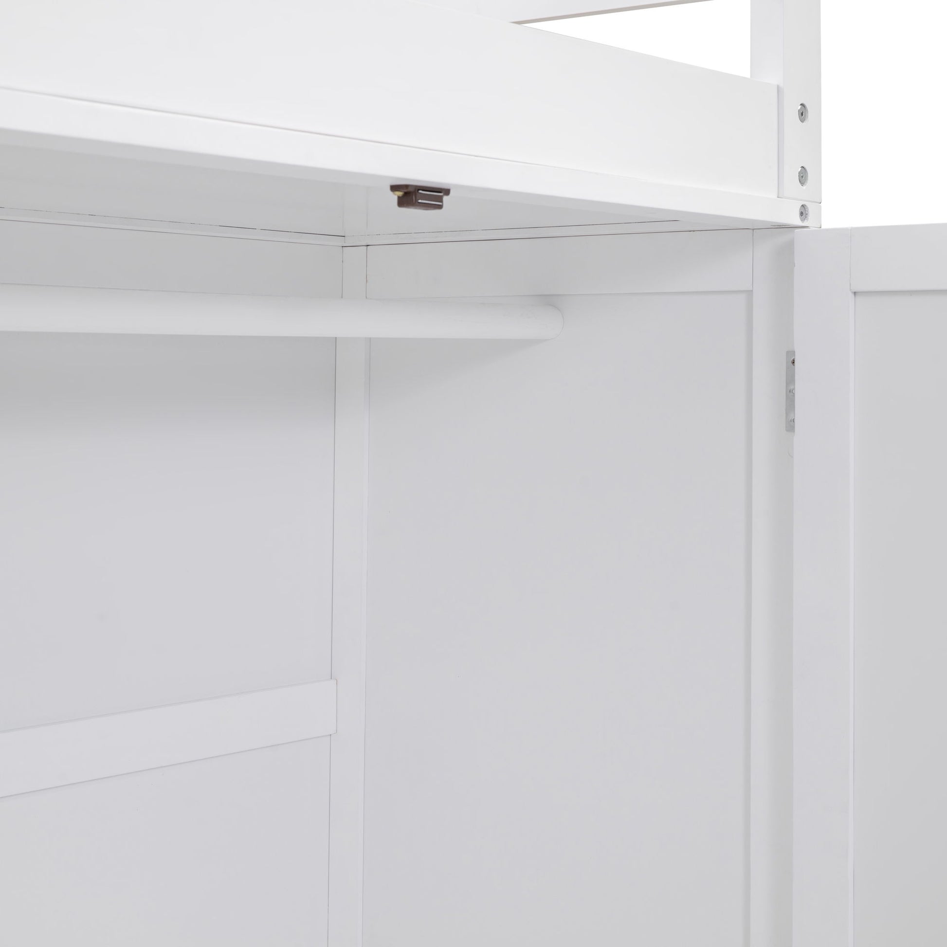 Full Size Loft Bed With Drawers, Desk, And Wardrobe - White