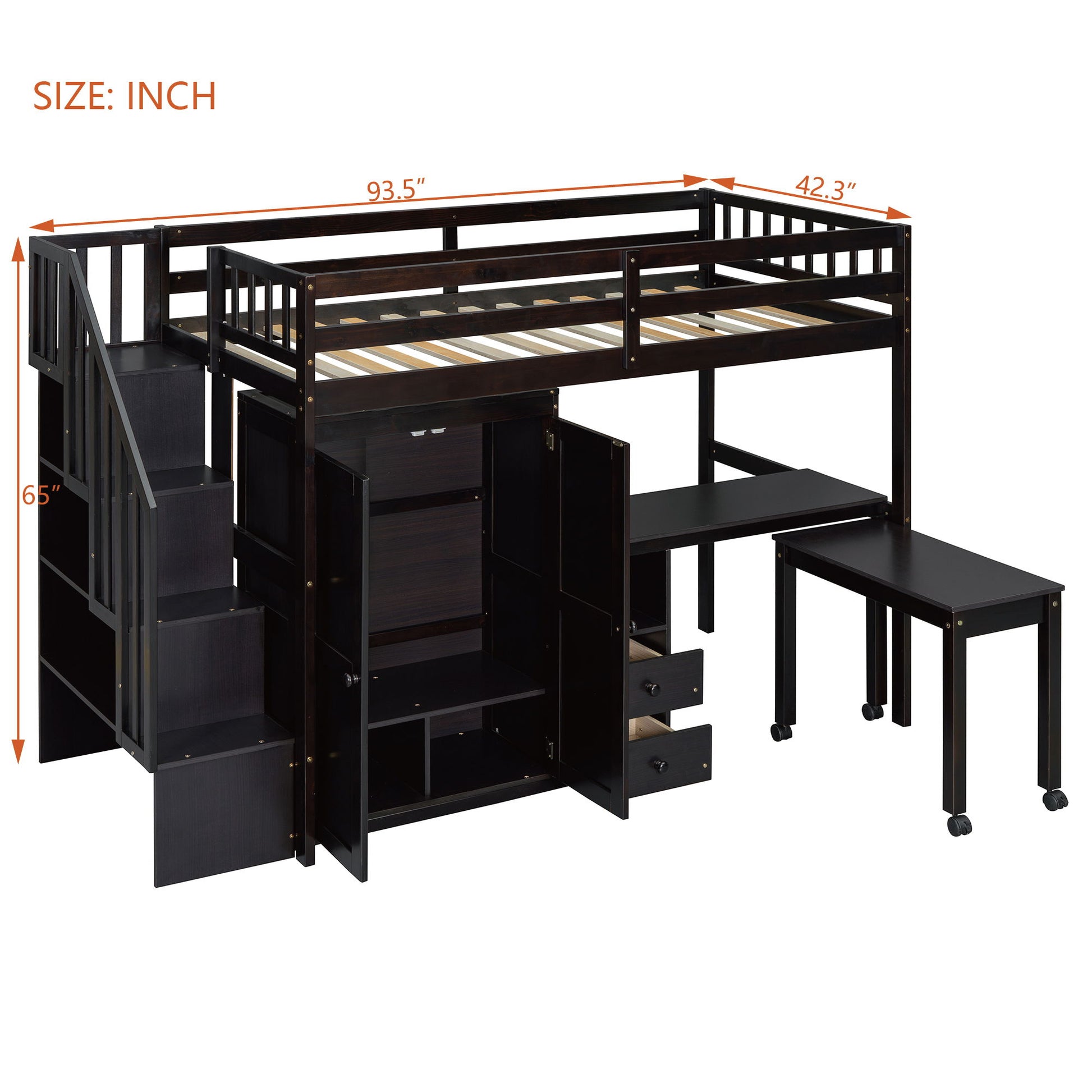 Twin Size Loft Bed With Stairs, Bookshelf, Drawers, Desk & Wardrobe, Space Saving Multifunctional Furniture - Espresso