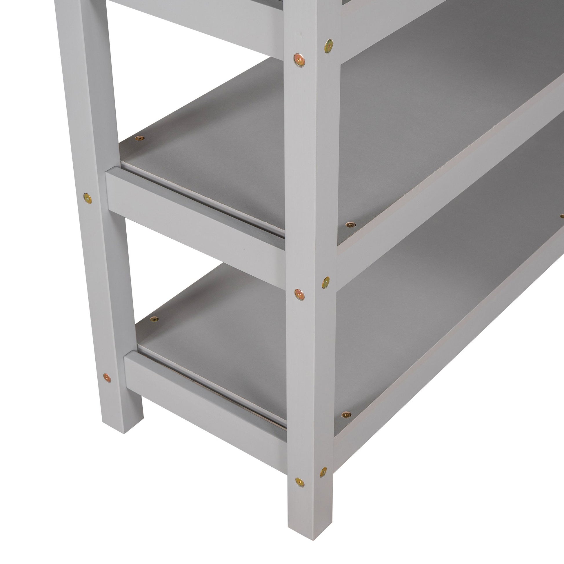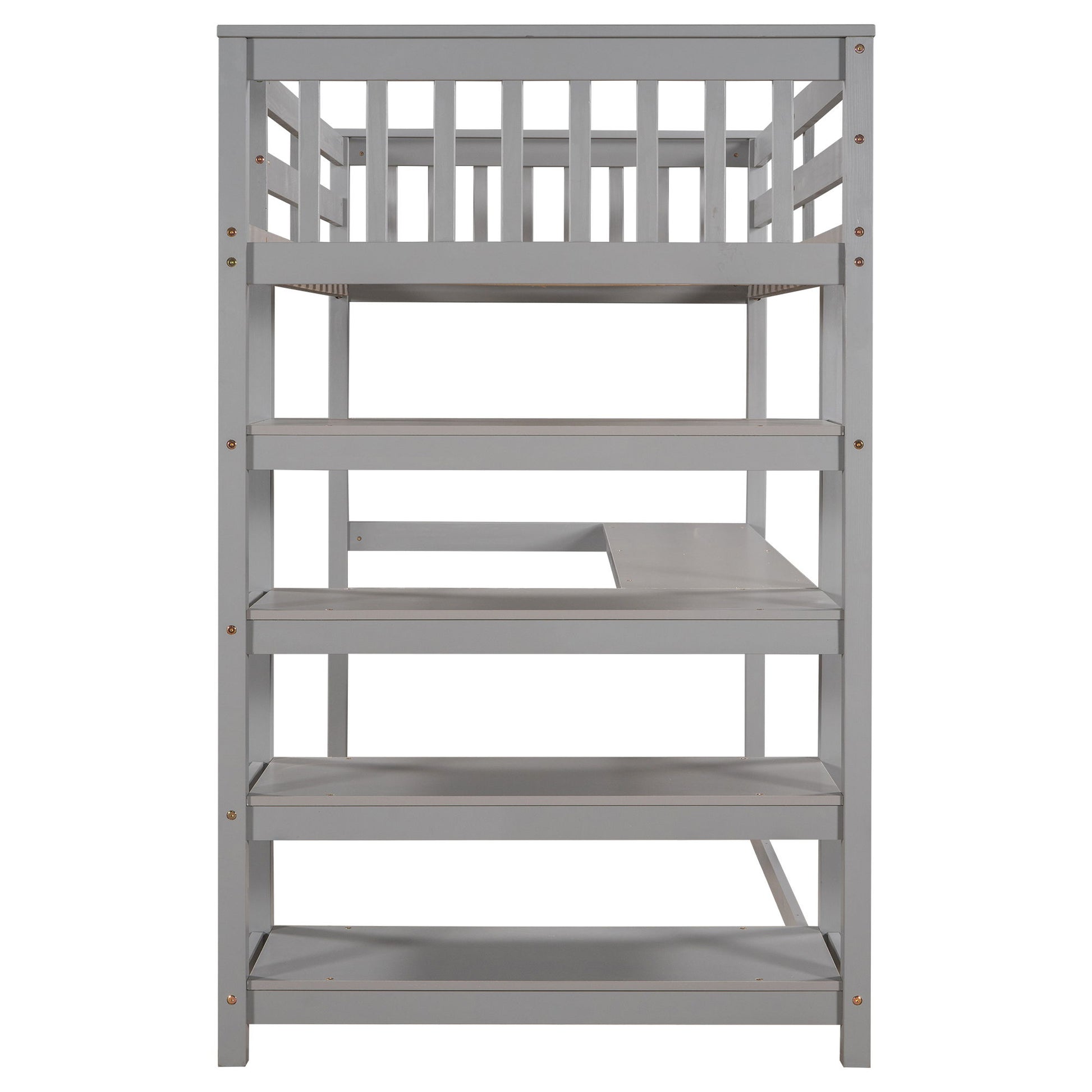 Twin Size Loft Bed With Storage Shelves And Under Bed Desk - Gray