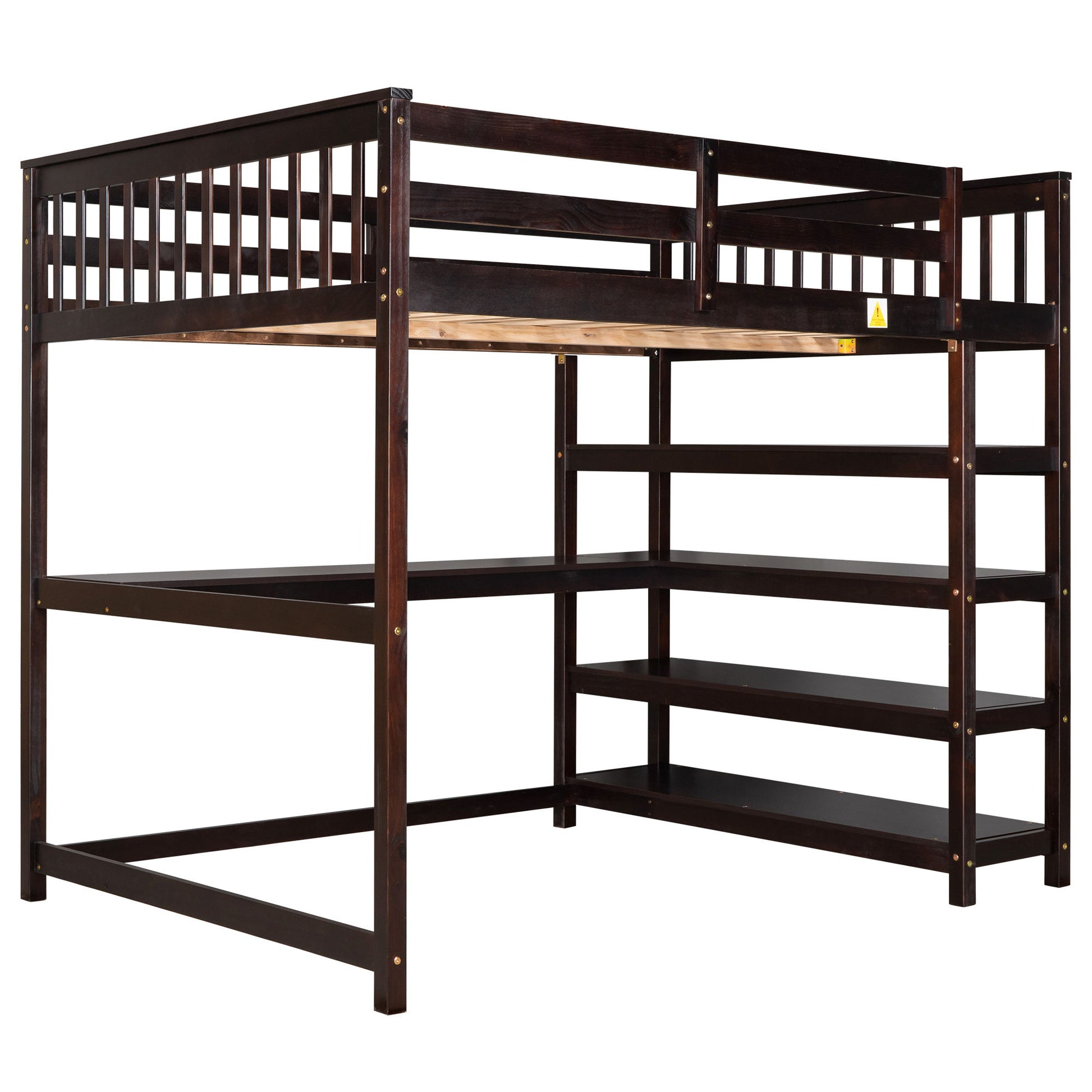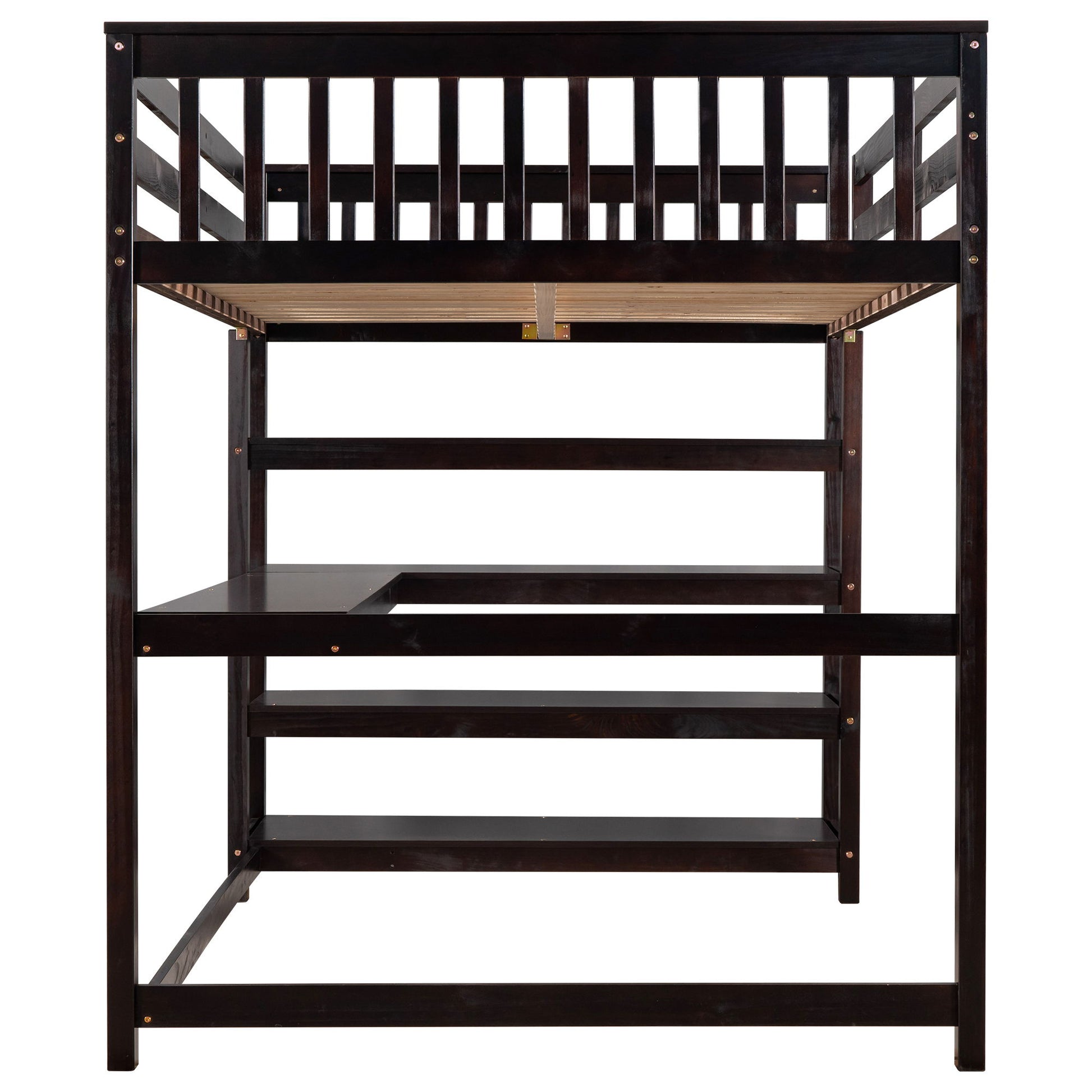 Full Size Loft Bed With Storage Shelves And Under Bed Desk - Espresso