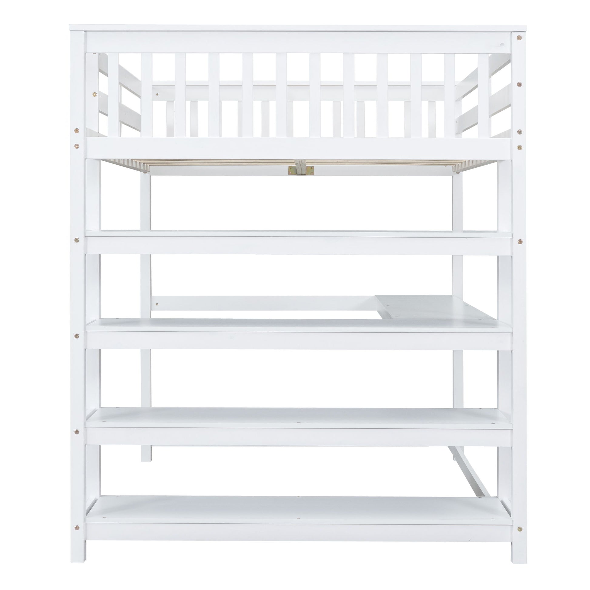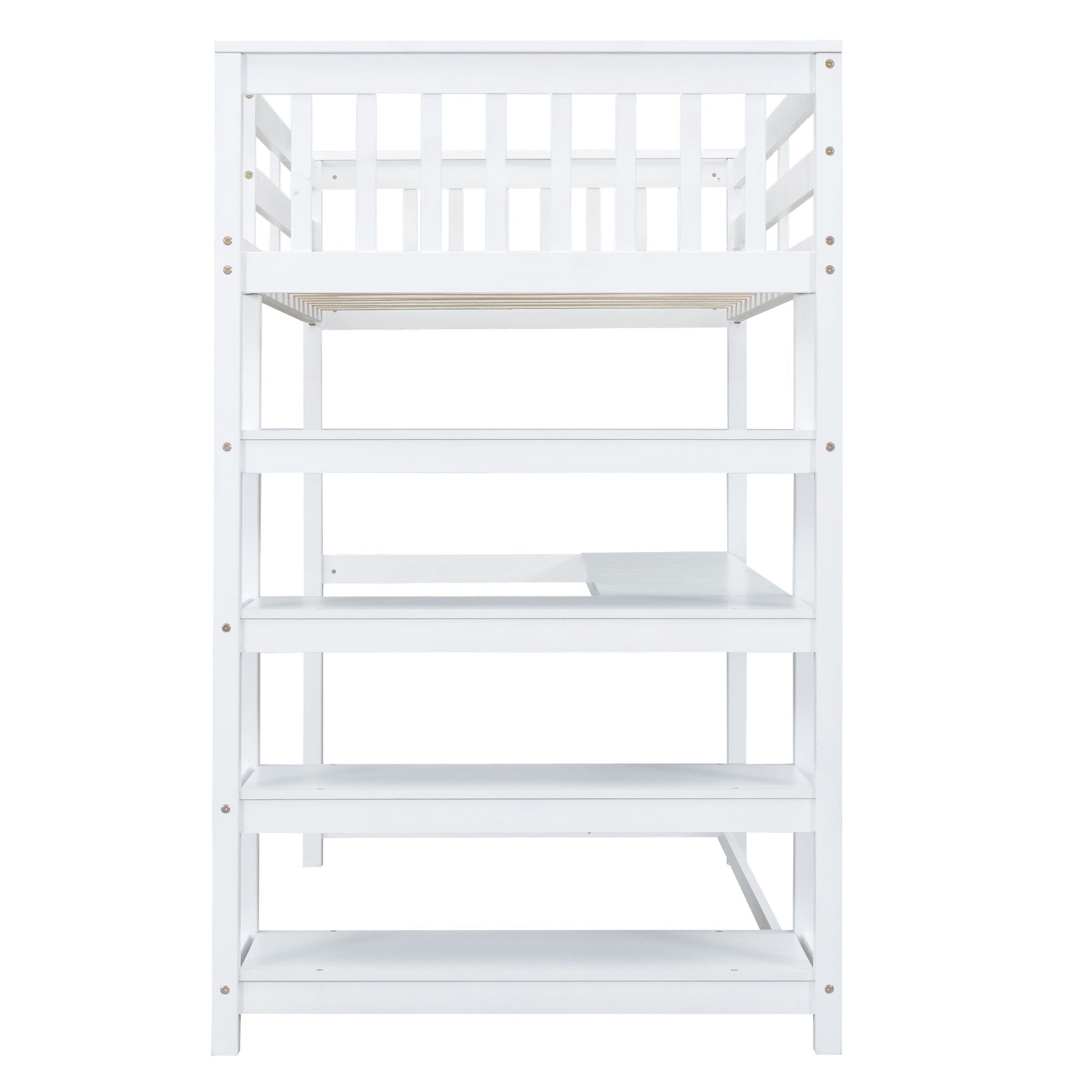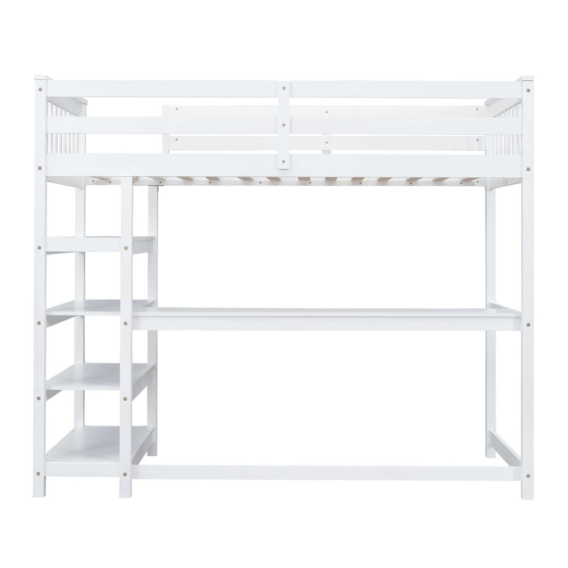 Twin Size Loft Bed With Storage Shelves And Under Bed Desk - White