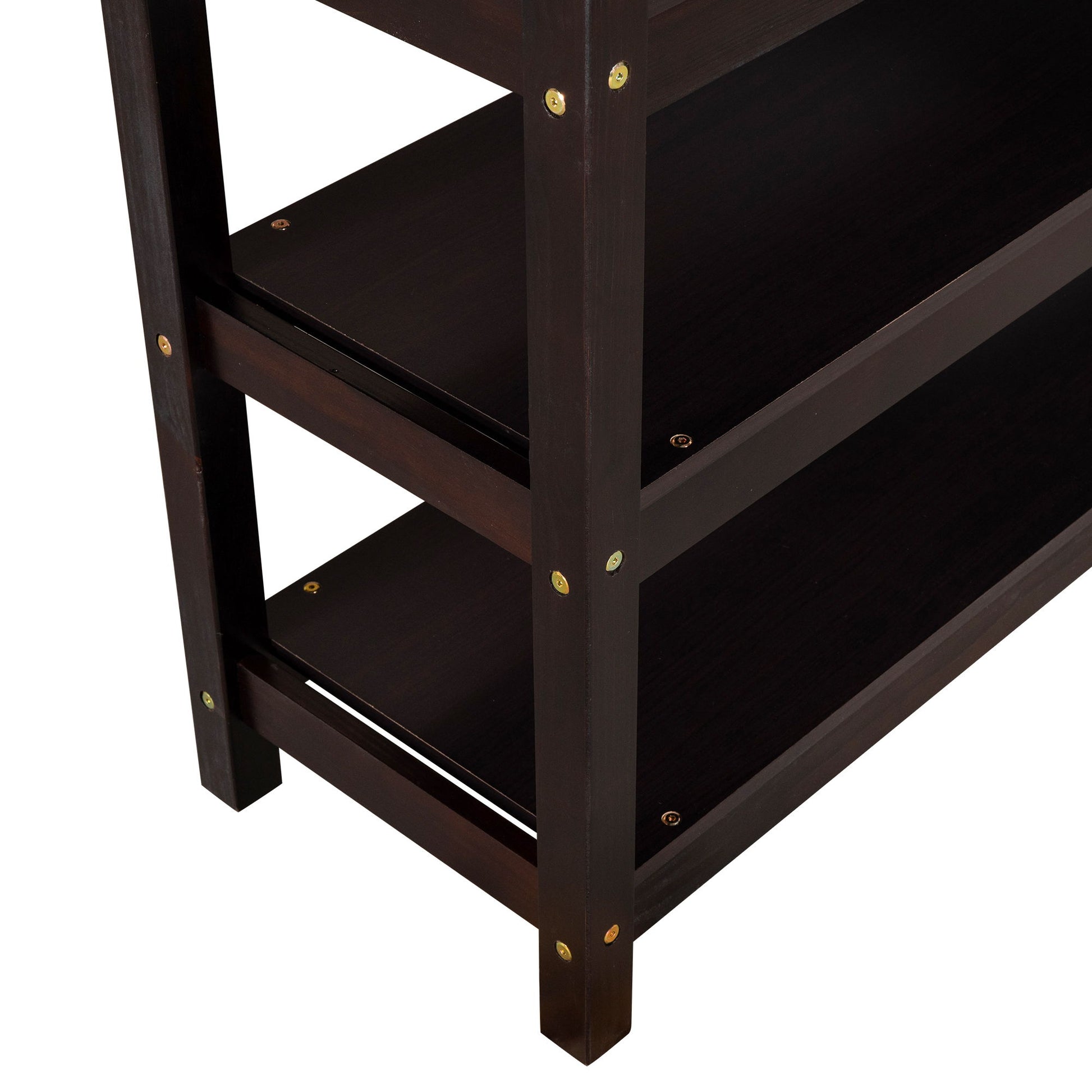 Twin Size Loft Bed With Storage Shelves And Under Bed Desk - Espresso