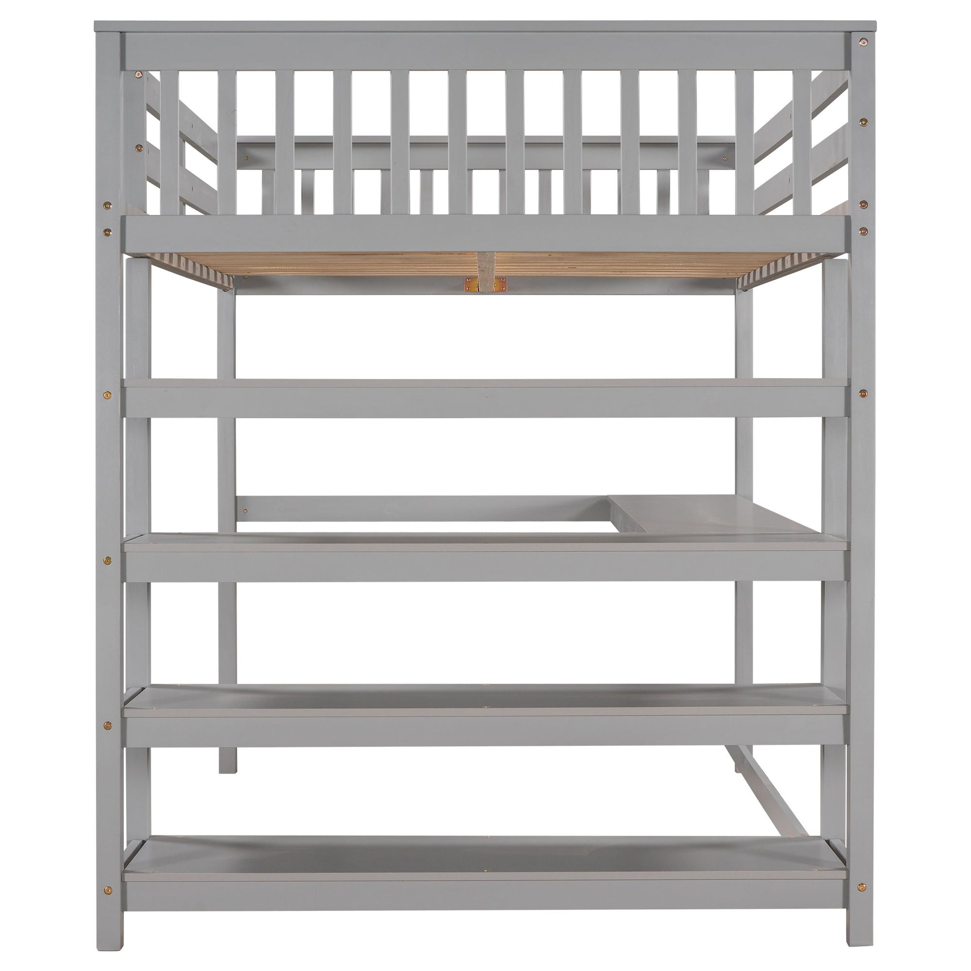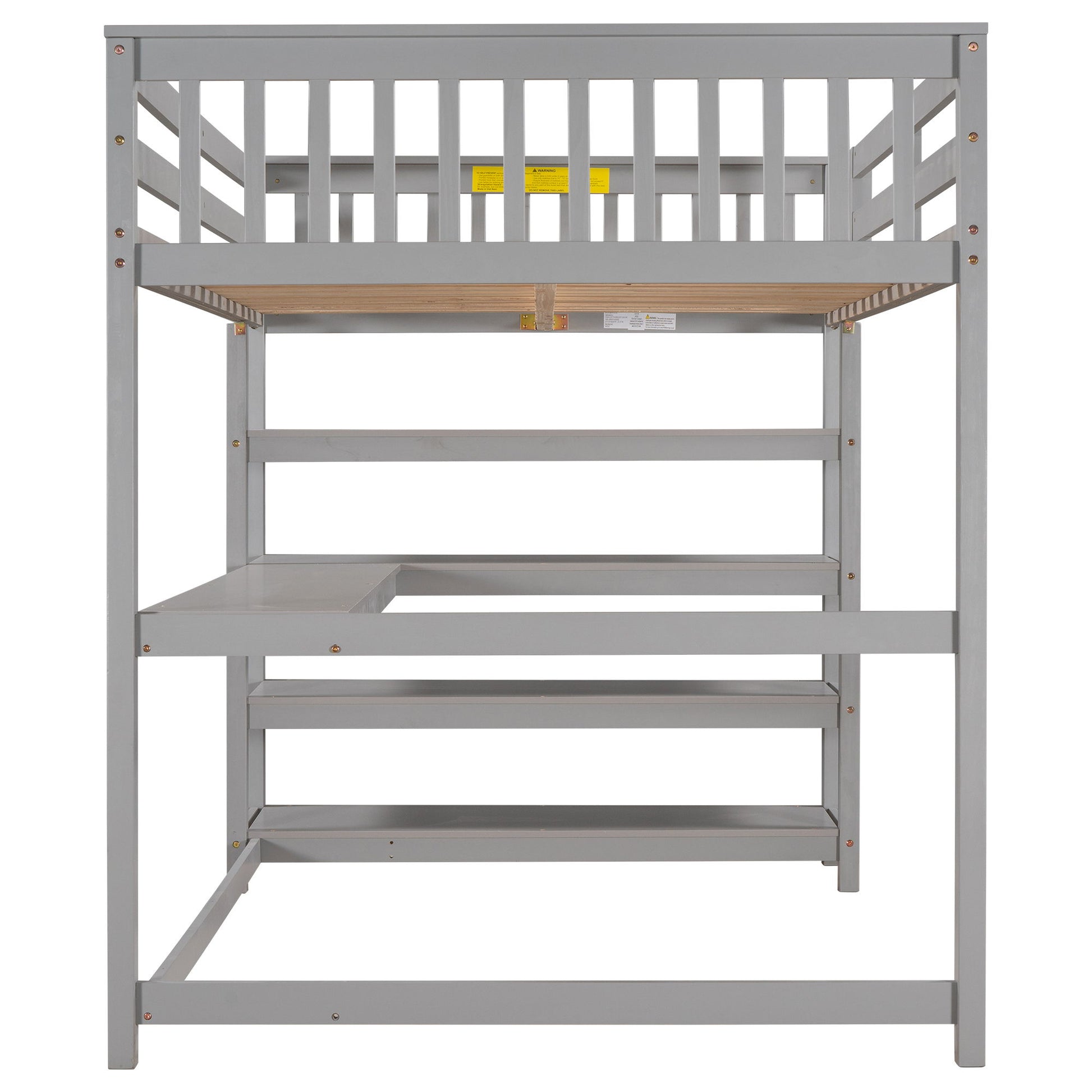 Full Size Loft Bed With Storage Shelves And Under Bed Desk - Gray