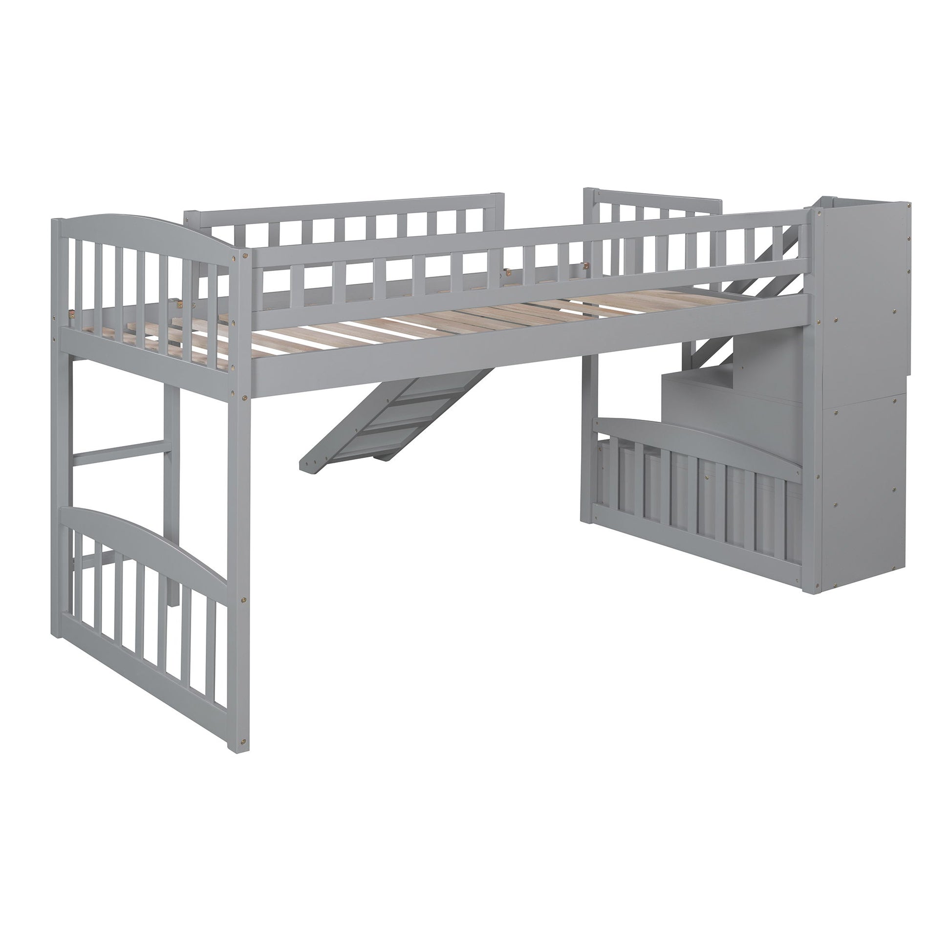Twin Size Loft Bed Stairway With 2 Drawers And Slide - Gray