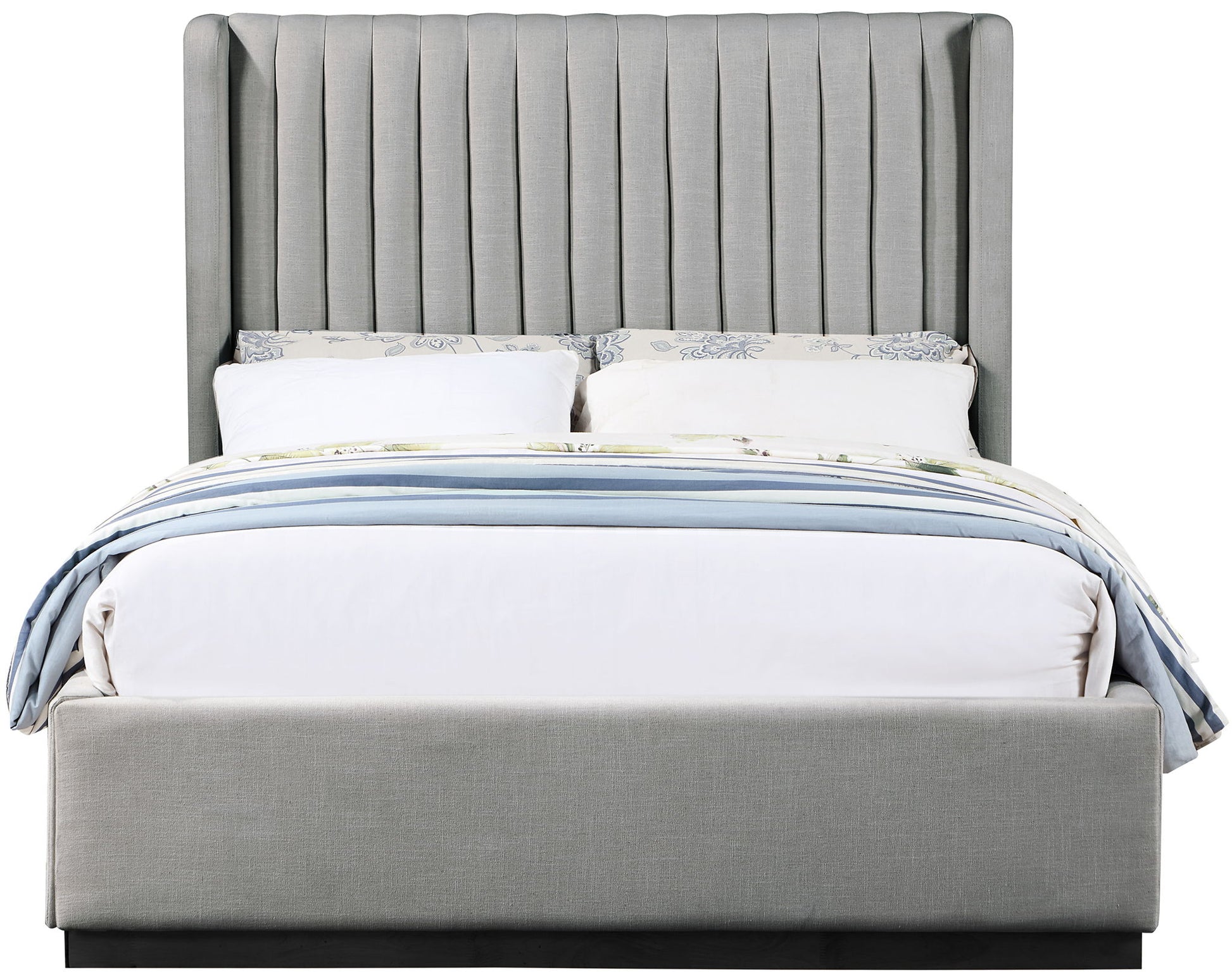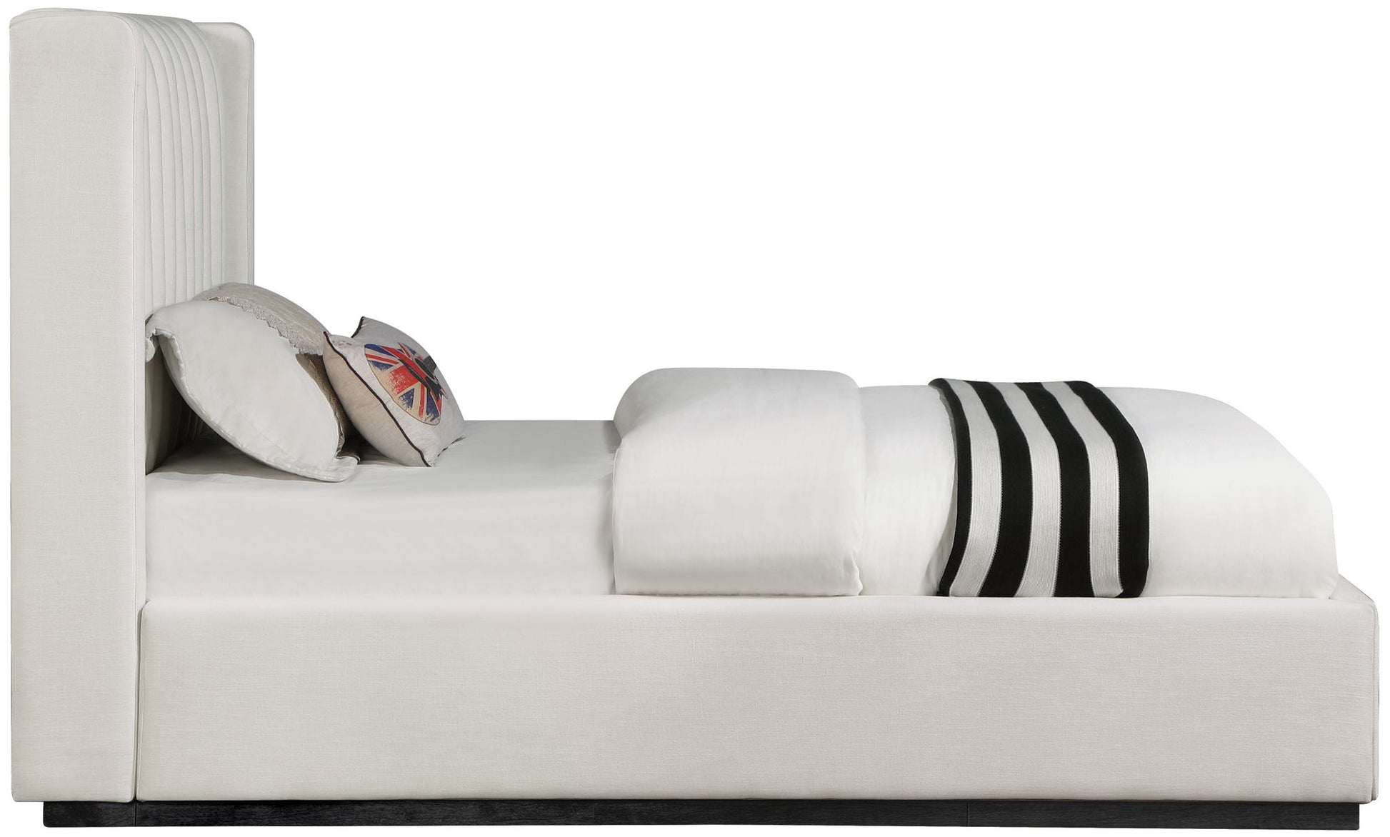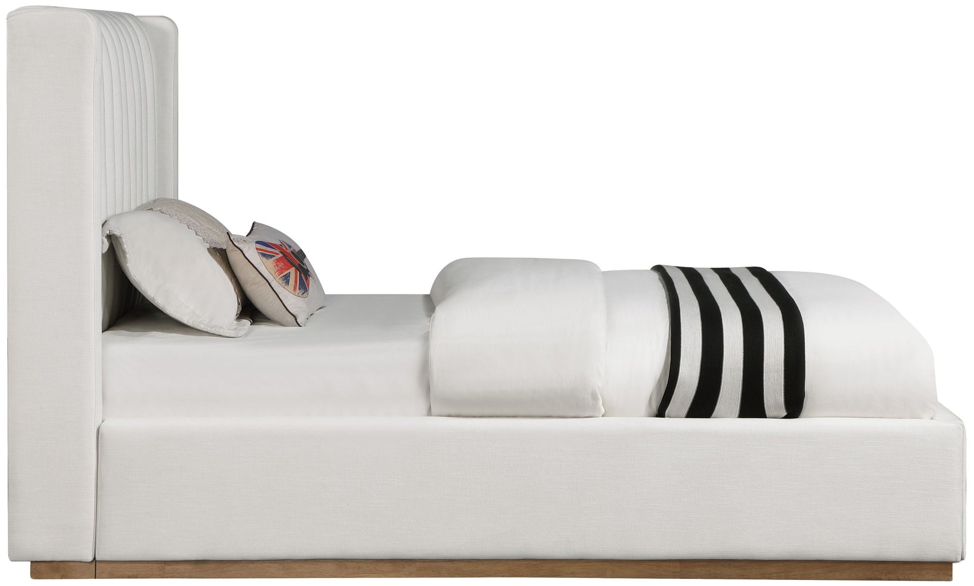 Nestle you (or the two of you) into the welcoming confines of this Logan linen textured fabric bed. This handsome bed features a super tall headboard that's channel tufted for extra softness and support against your back while you catch up on your reading or watch TV in bed. Soft rich beige linen fabric covers the back and sides of this wingback bed, giving it an ultra modern feel. A solid finished wood base provides ample support for lasting performance and durability.