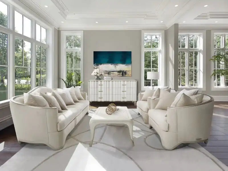 - Chair cushion and body are upholstered in a champagne fabric the emulates raw woven silk