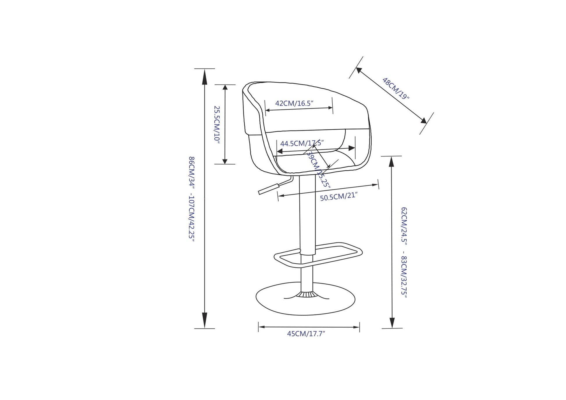 - Features sturdy polished chrome base with 360 degree swivel and footrest. Seat Adjusts from bar to counter height with gas lift
