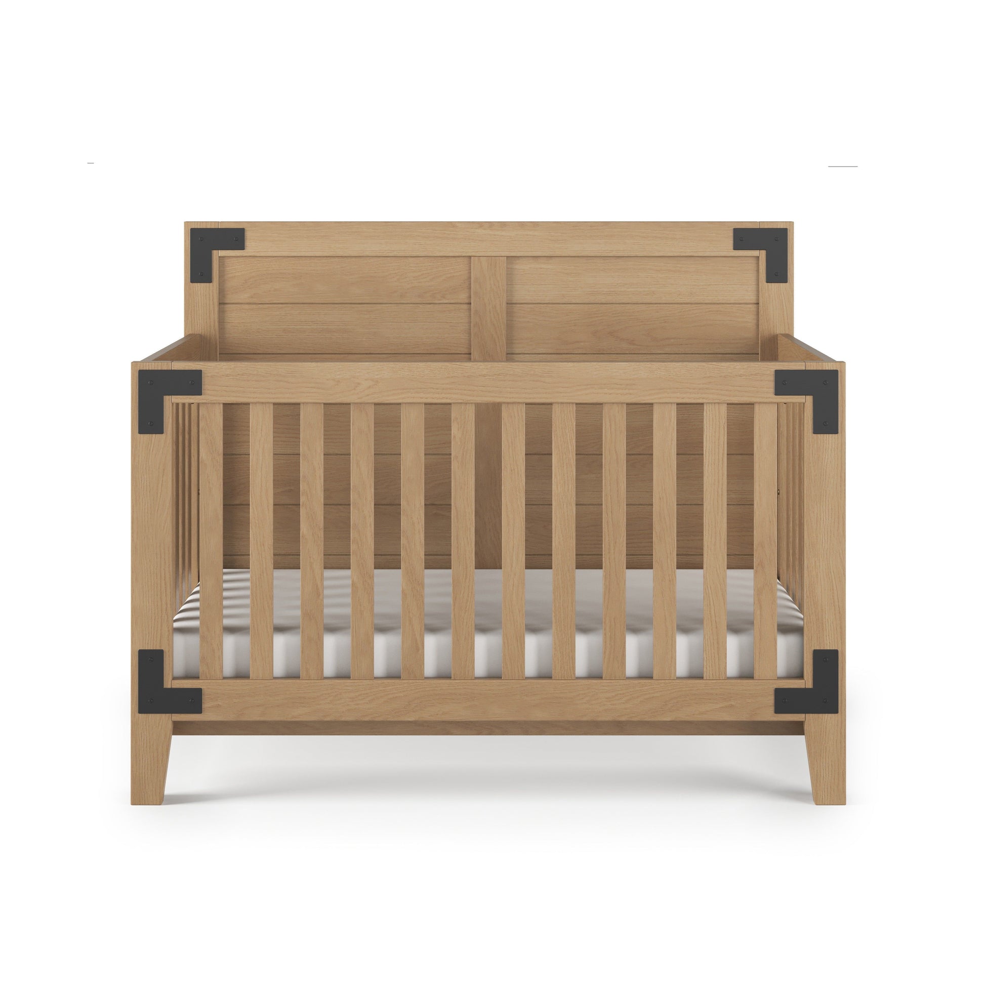 The Halo Sleep Lucas 4-in-1 Convertible Crib elegantly combines the charm of modern farmhouse aesthetics with functional versatility. Featuring bold bracket hardware and a shiplap headboard, this crib exudes a rustic yet refined design that enhances your baby’s nursery. Crafted with angled cut legs, the crib embodies a timeless transitional style, seamlessly integrating into a variety of décor themes. The sophisticated nutmeg finish accentuates its unique details while ensuring a warm, welcoming environment for your child.
