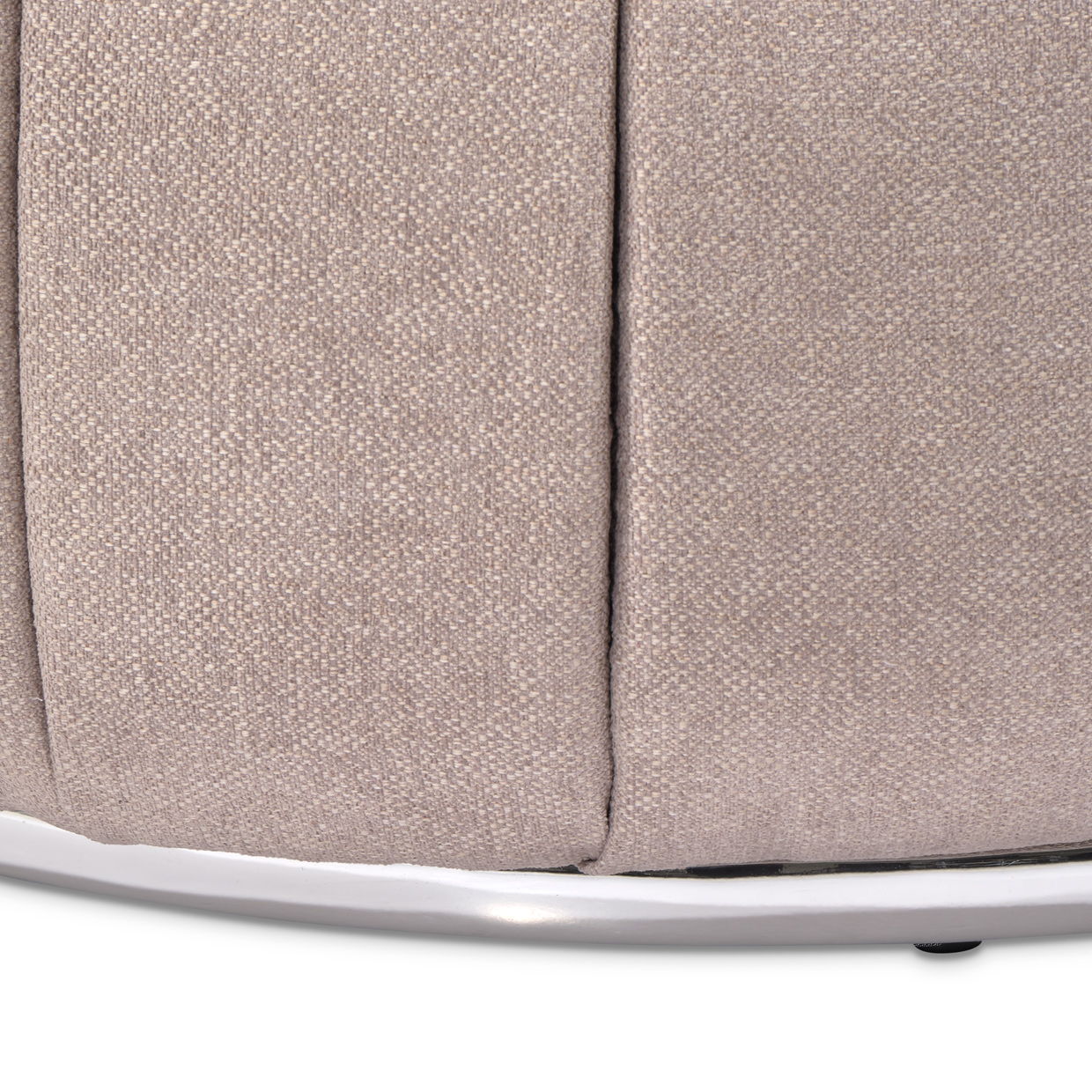 - Table is upholstered in tweed-like woven fabric in a tan nougat hue