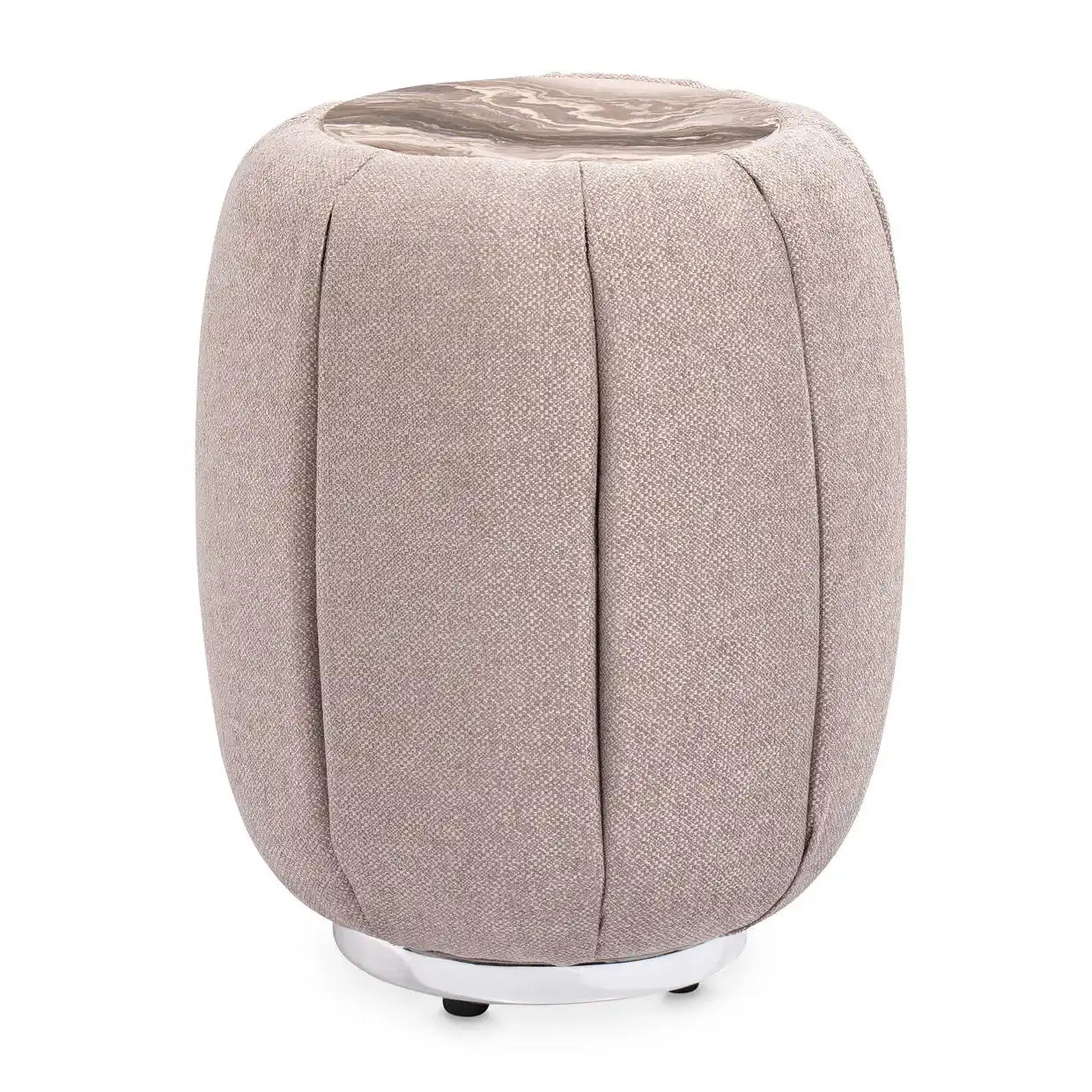 A harmonious blend of style and utility. Dressed in channeled woven fabric and topped with a faux marble surface. Optimally designed to align with your favorite chair, it's the perfect companion for your seating ensemble or a chic stage for your home accessories.