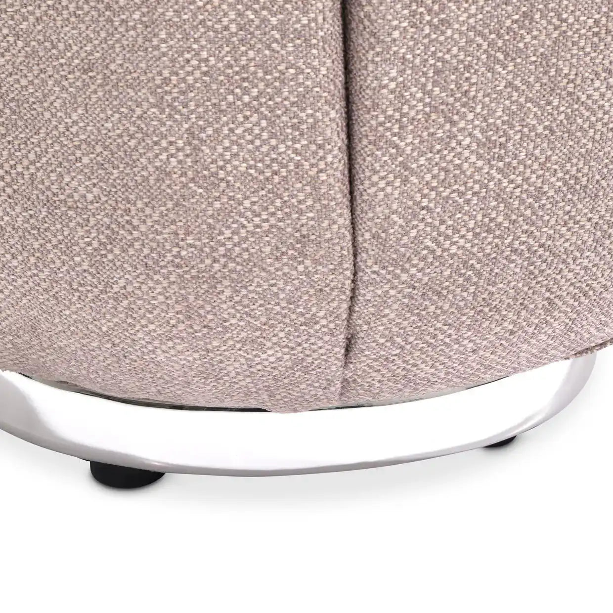 - Table is upholstered in tweed-like woven fabric in a tan nougat hue