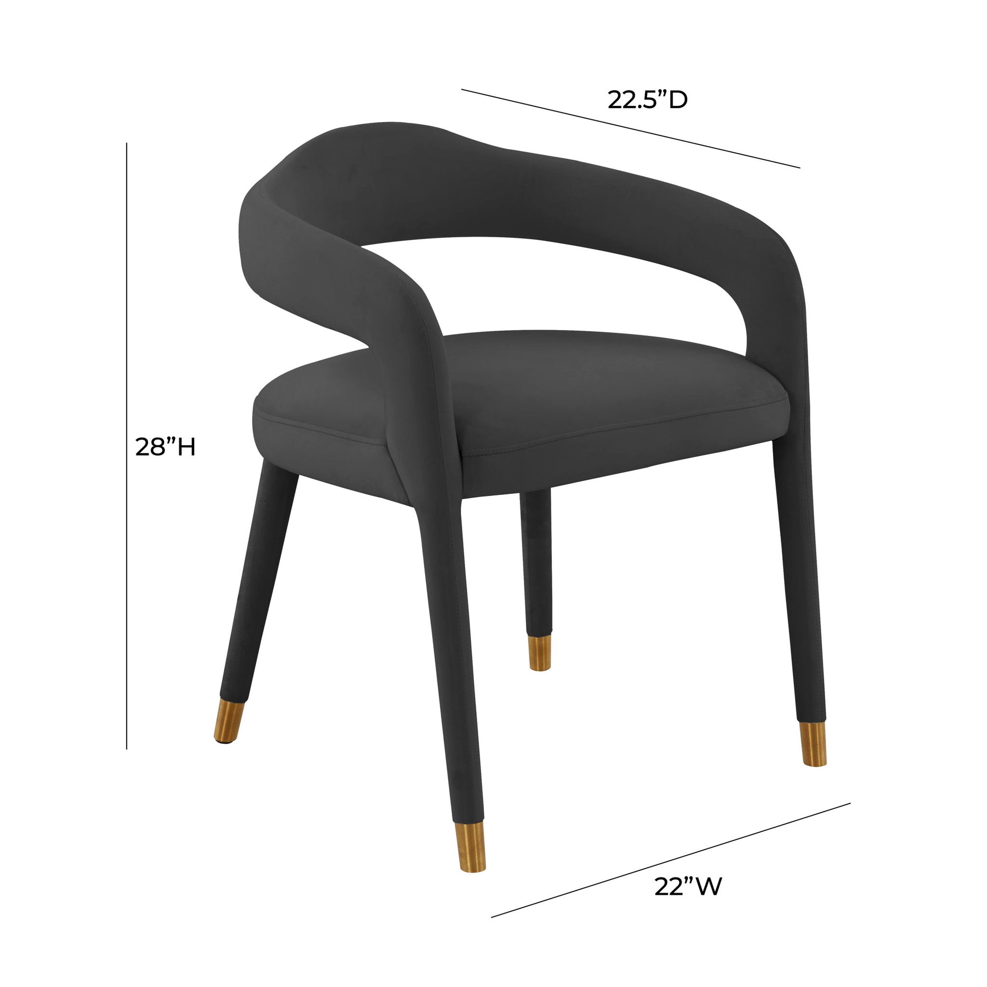 Your dining room can become a work of art with the Lucia Chair. Featuring a beautifully sleek velvet fabric, tastefully curved back and arms, and elegant gold tipped legs; this chair is sure to elevate any dining experience!