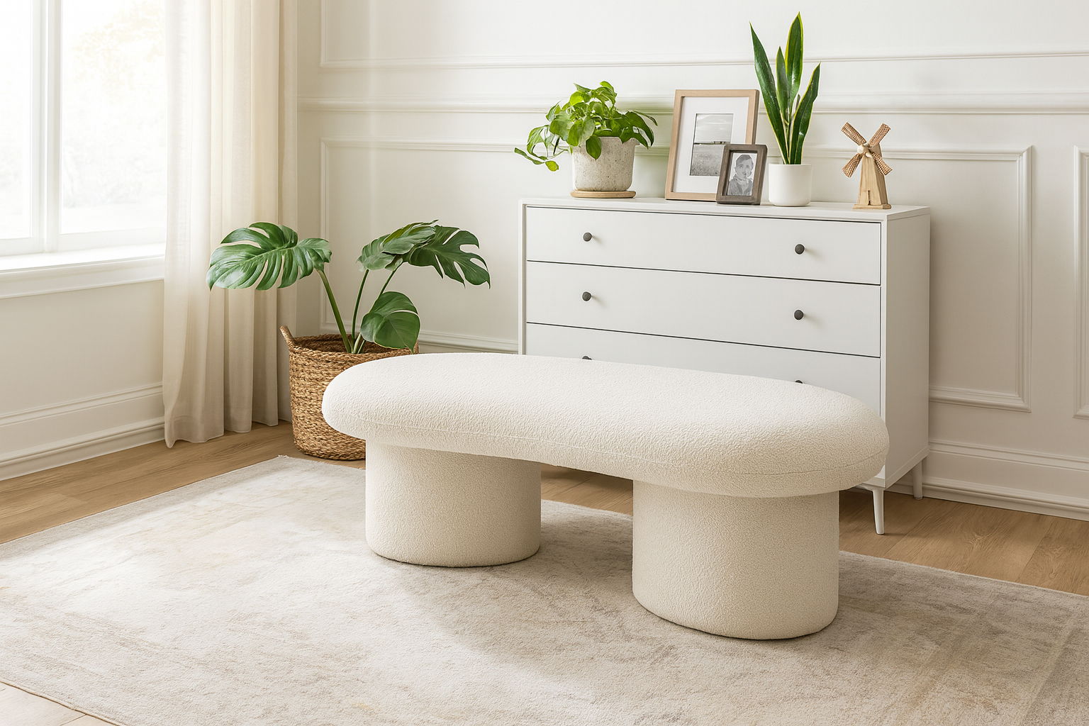 Elevate the aesthetic appeal of your living space with the stunning Luka Bench. Its rich boucle fabric adds a touch of sophistication, while its striking design is sure to catch the eye. The bench seamlessly combines style and comfort, making it a perfect addition to your home decor.