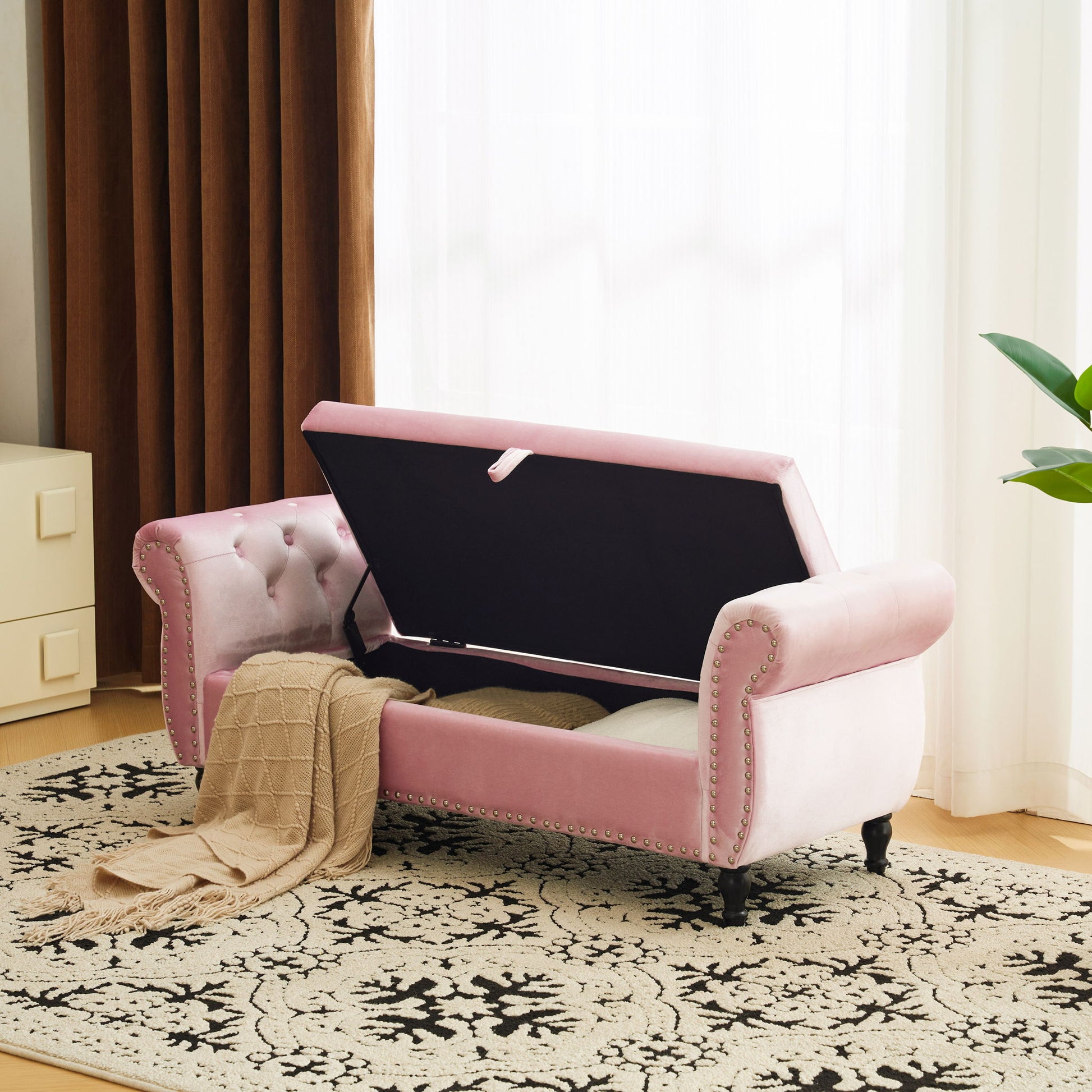 Luxurious Velvet Multifunctional Storage Ottoman Bench With Pillow - Pink