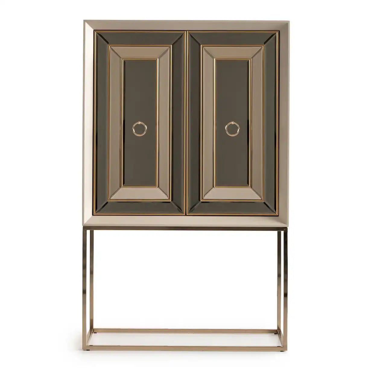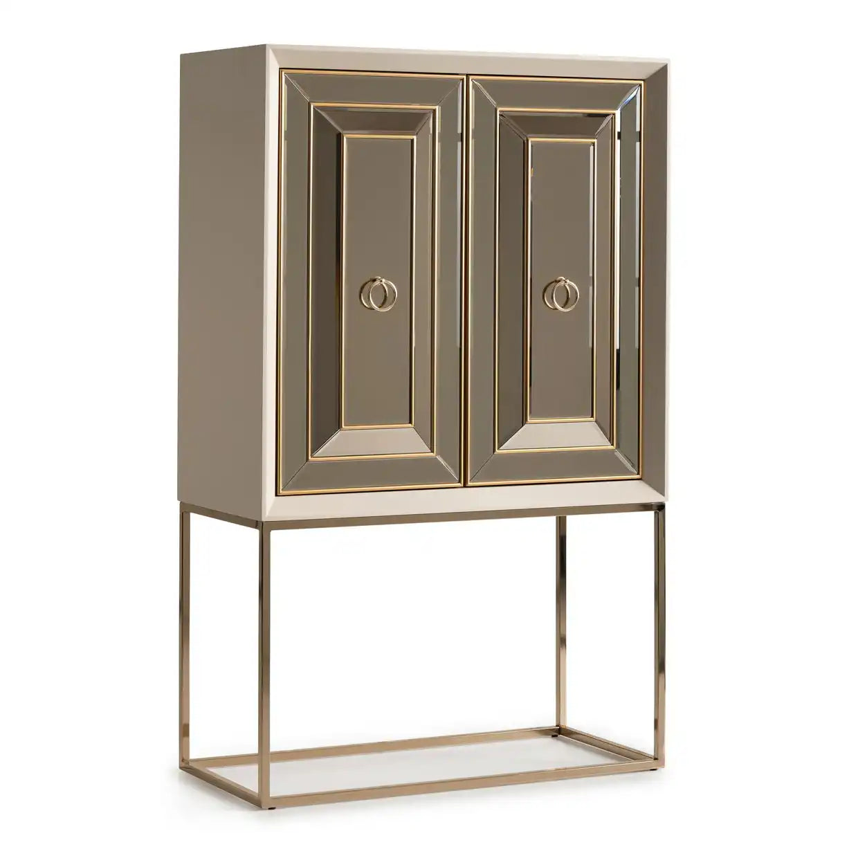 - Bronzed mirror accents infuse your space with luxurious shimmer