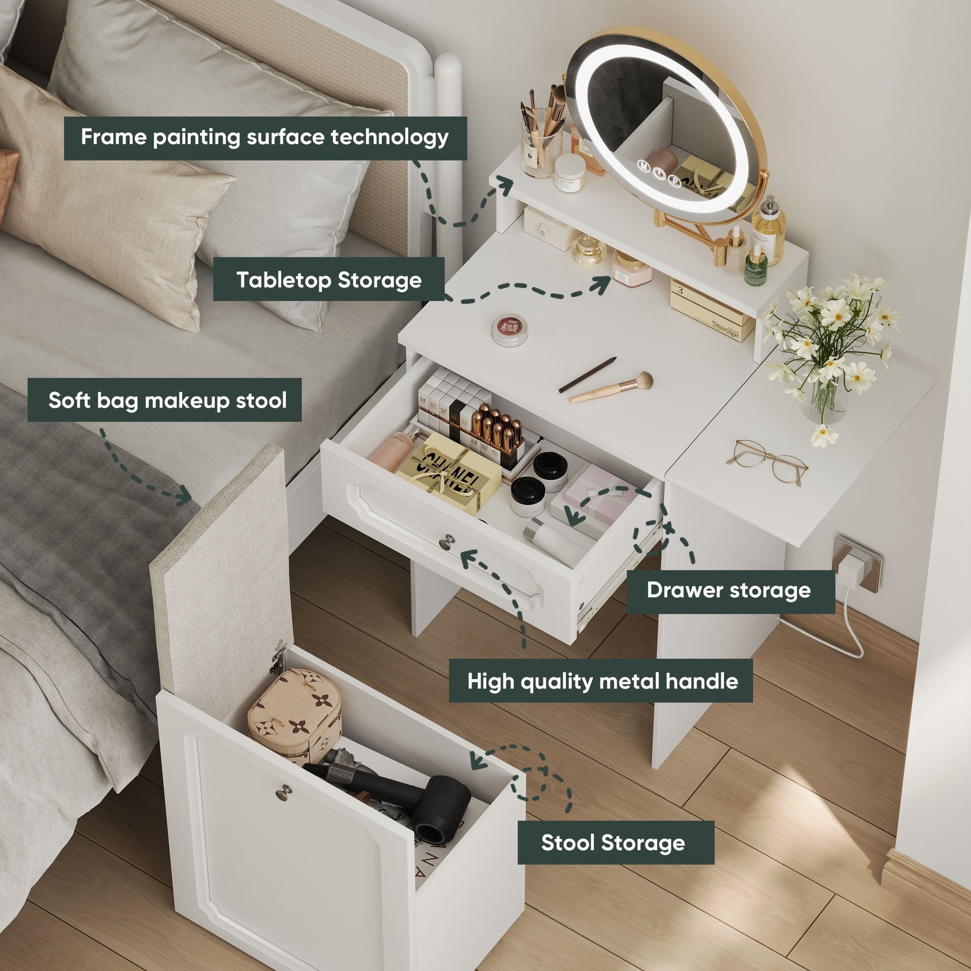- Foldable Extension Panel: Transforms the vanity into a writing desk, maximizing space in small rooms.