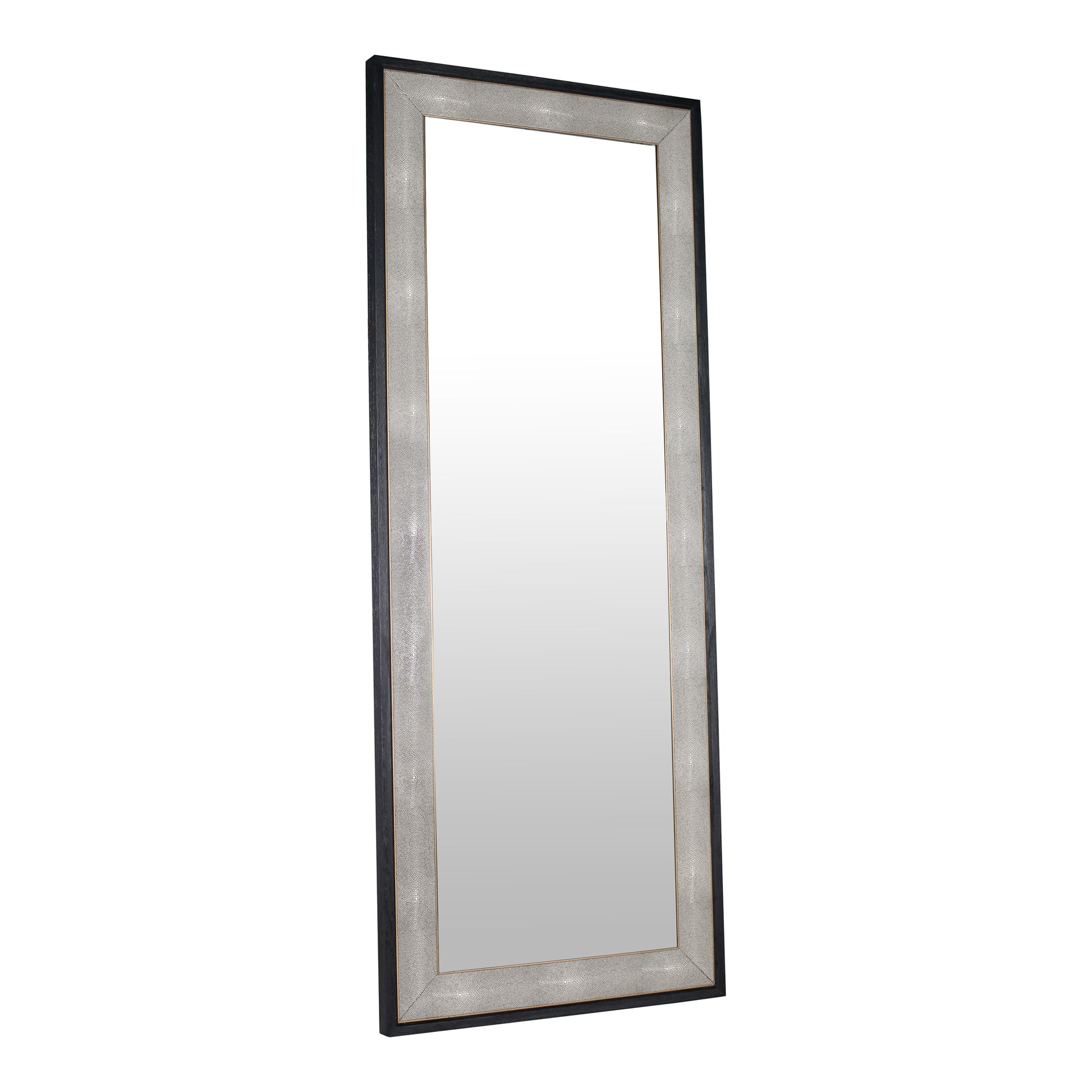 With each item upholstered in the highest quality vegan leather shagreen, the Mako collection brings effortless style, visual texture and substance to your living space. A reflection of good things to come, this contemporary modern mirror features a black oak frame with gold trim around the edges.