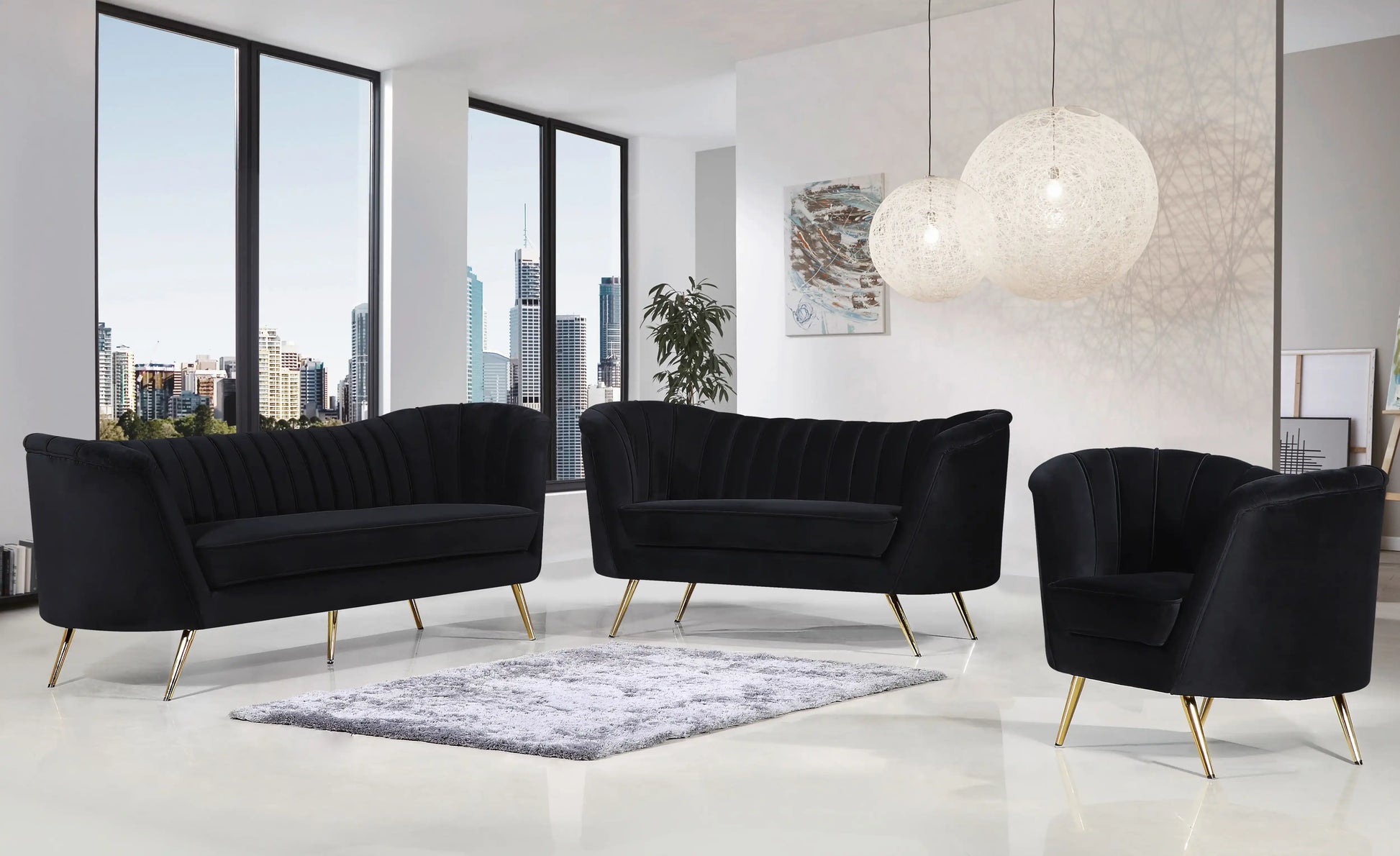 Lean back and lounge in luxurious style on this stunning Margo velvet chair by Meridian Furniture. This contemporary chair features plush velvet upholstery that is both classy and sumptuous against your skin, and rounded arms that curve into a low, rounded back, creating a perfect, modern piece for your home. stainless steel legs support this chair and provide stunning contrast to the chair's plush, fabric.