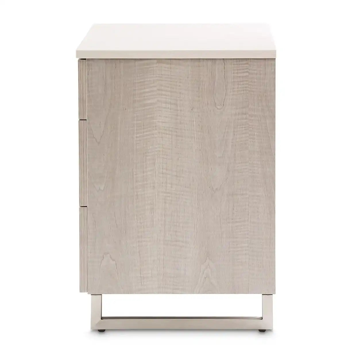 The Marin Nightstand is simple yet elegant with its cultured marble top and stainless-steel accents. The three velvet lined drawers with self-closing glides are the perfect place for convenient bedside storage.