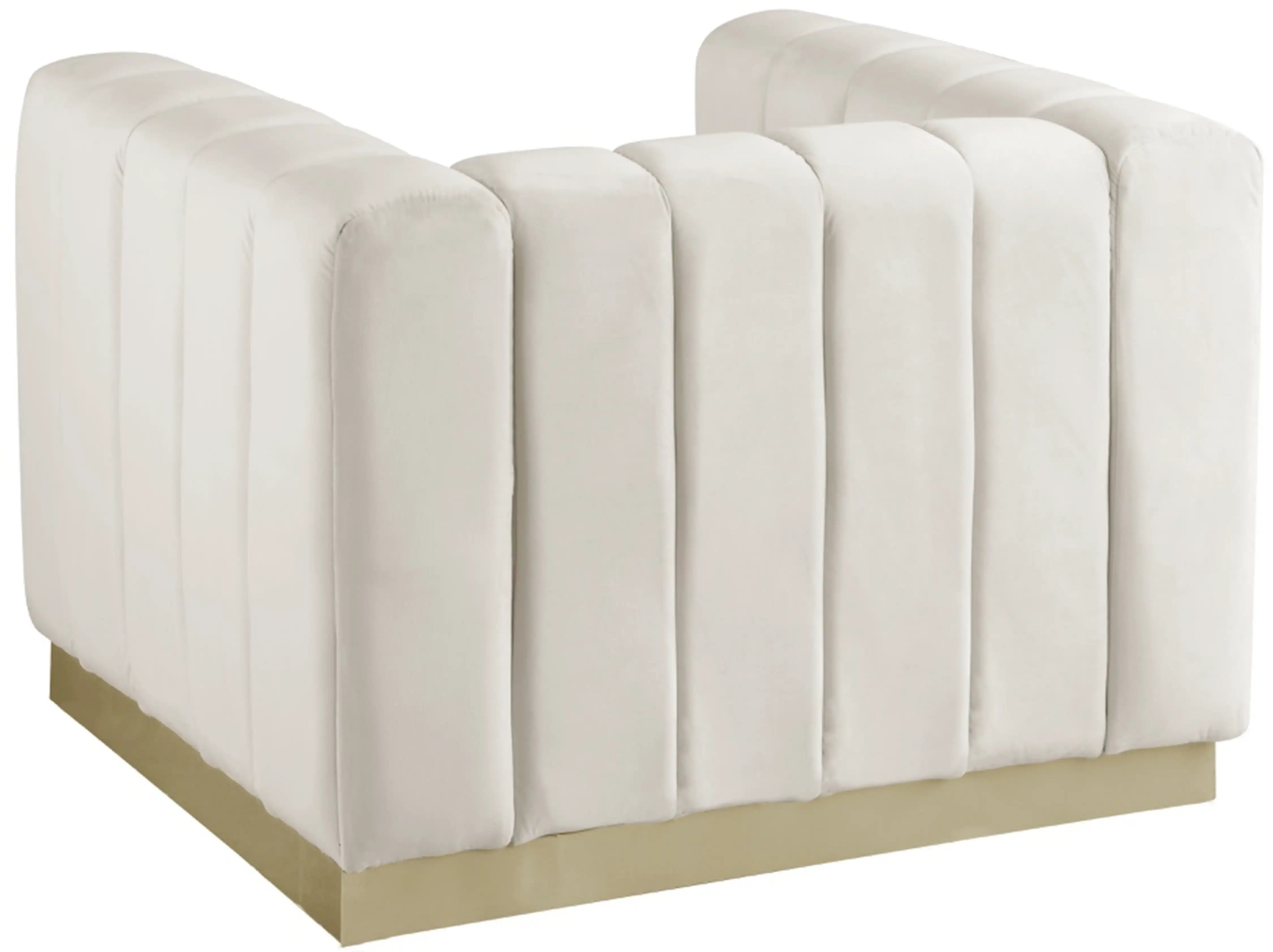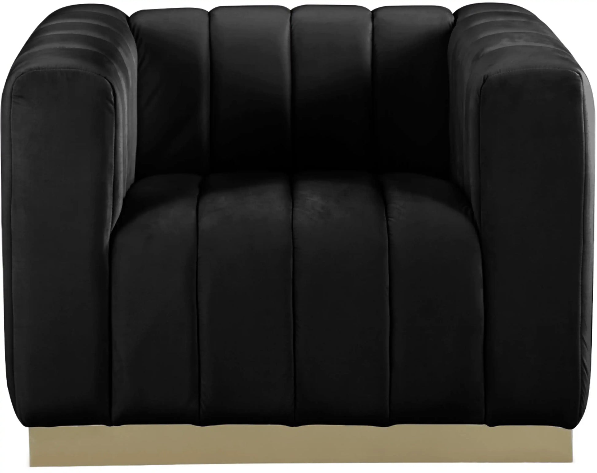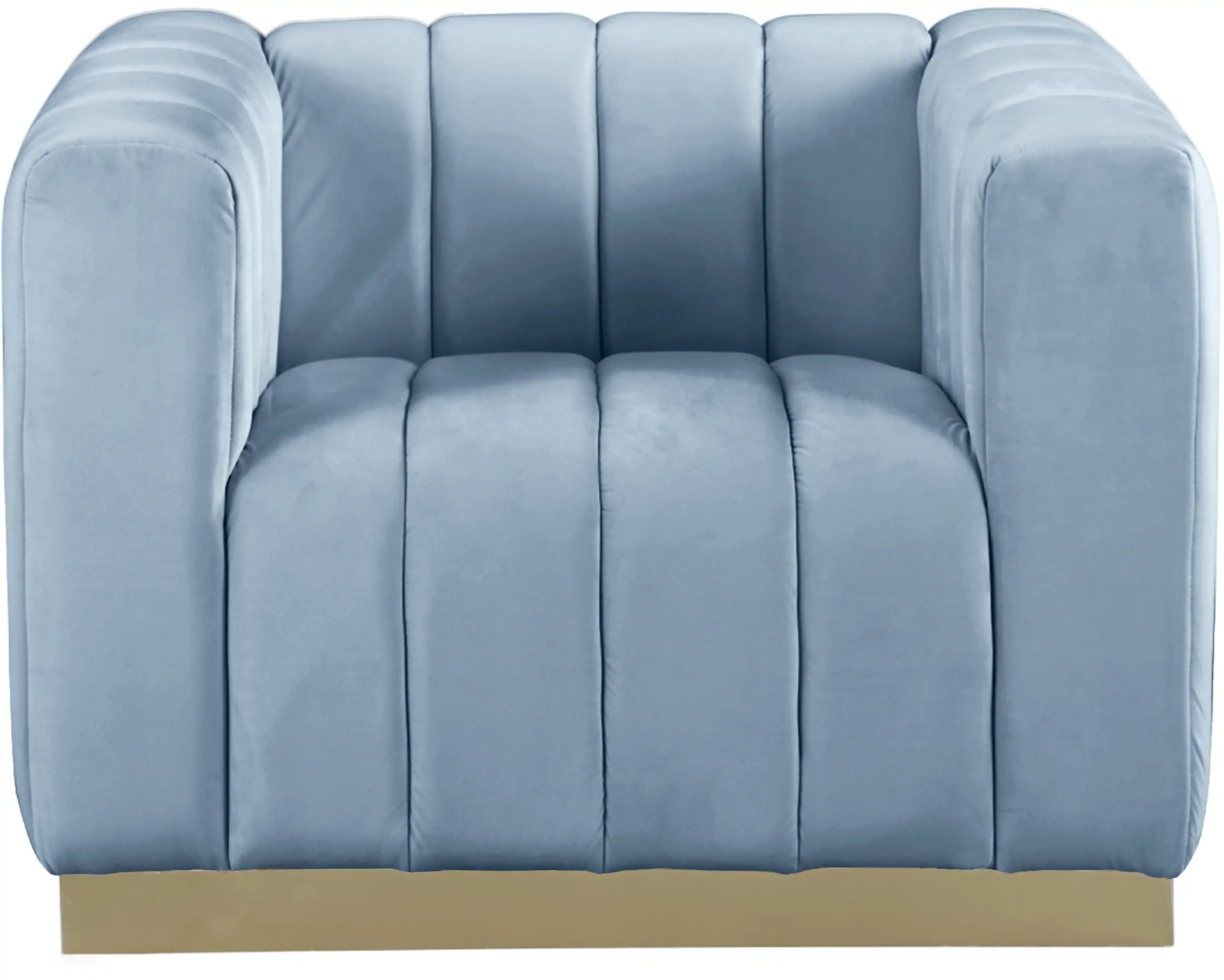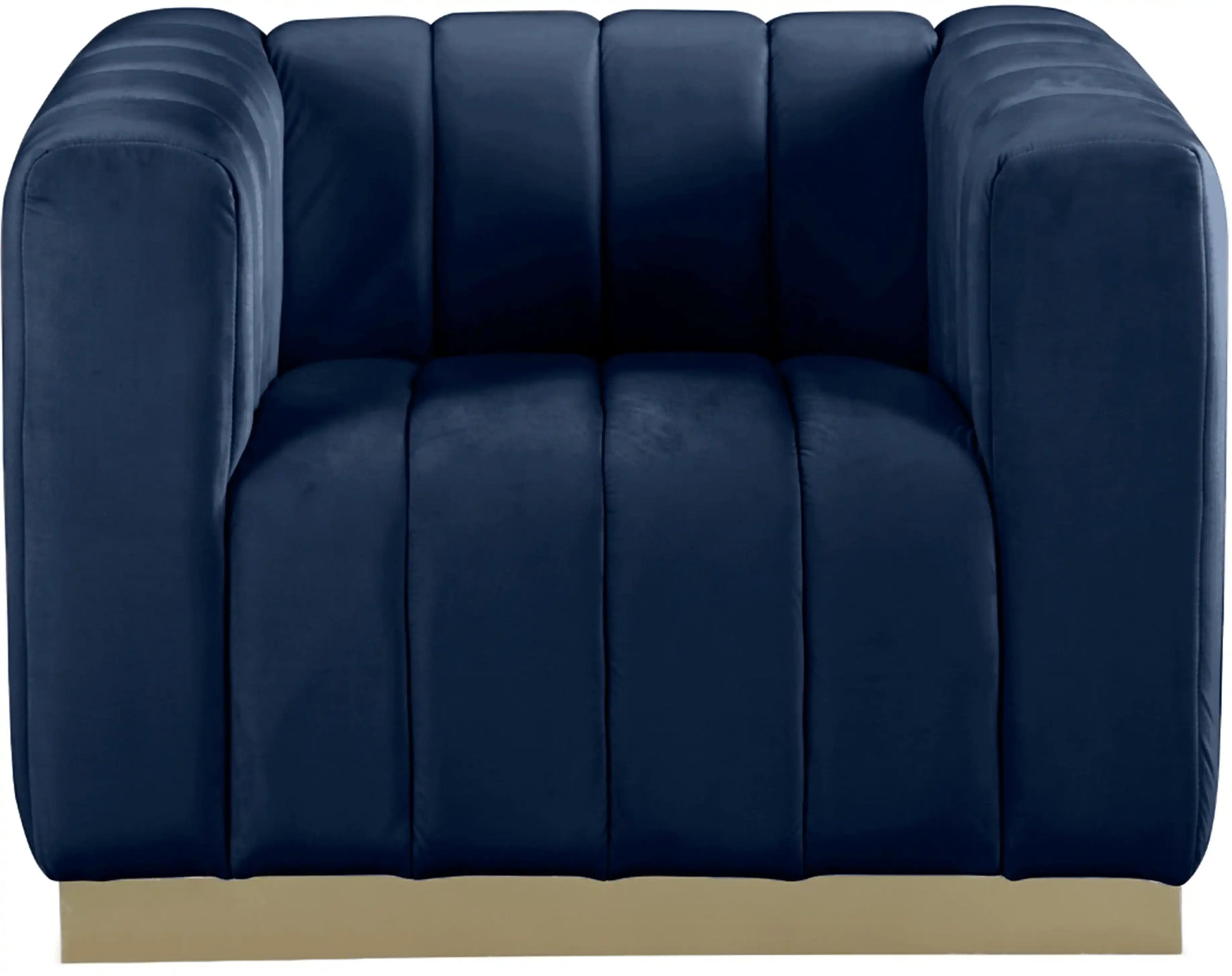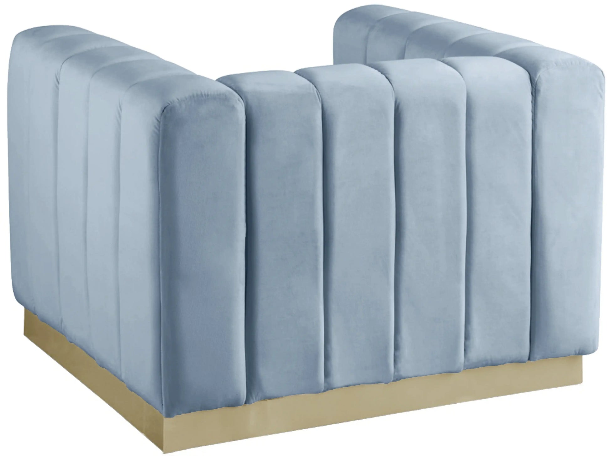 Seat guests in the epitome of comfort and style with this Marlon velvet chair. This piece is just the thing to showcase your modish style while ensuring total enjoyment from all who are lucky enough to relax on its channel tufted seats. The soft velvet upholstery adds a beautiful touch to your space and feels great against your skin while the brushed stainless steel base lends it a contemporary finish.