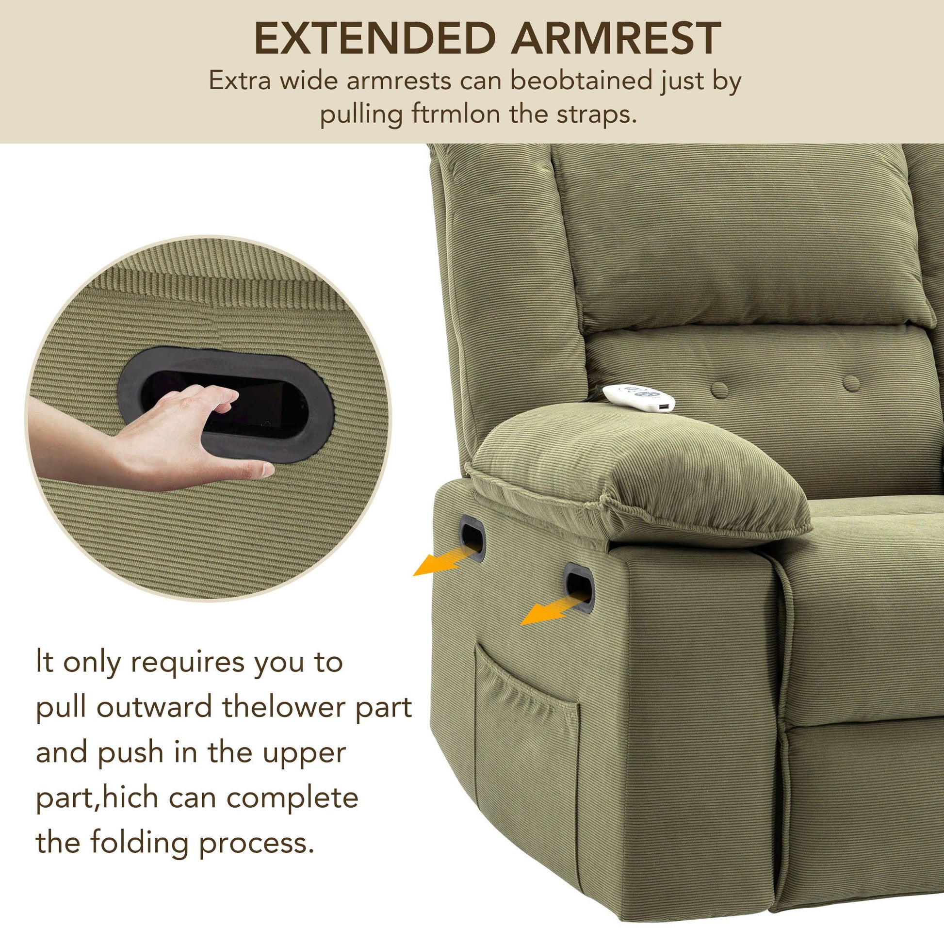 Massage Recliner, Power Lift Chair & Adjustable Massage And Heating Function, Recliner Chair With Infinite Position And Side Pocket For Living Room - Green