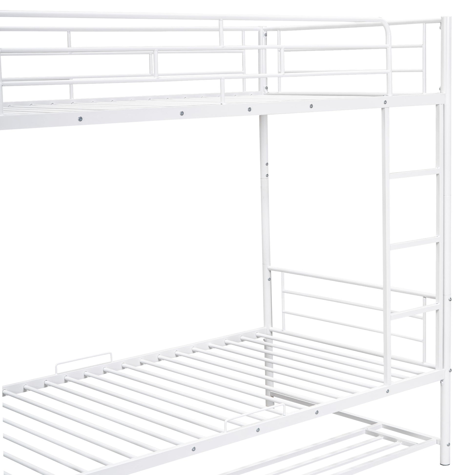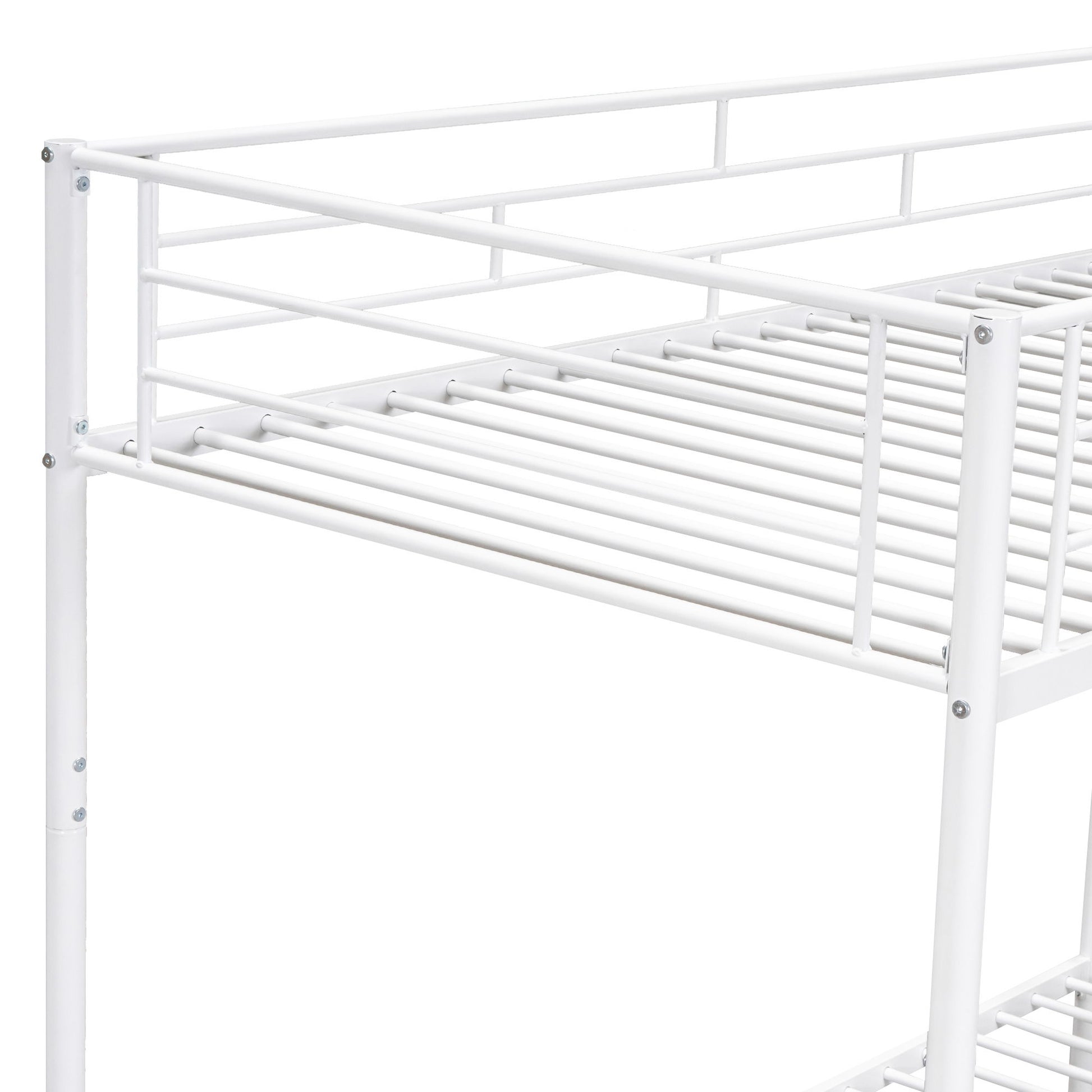 Twin Over Twin Bunk Bed With Shelf And Guardrails - White