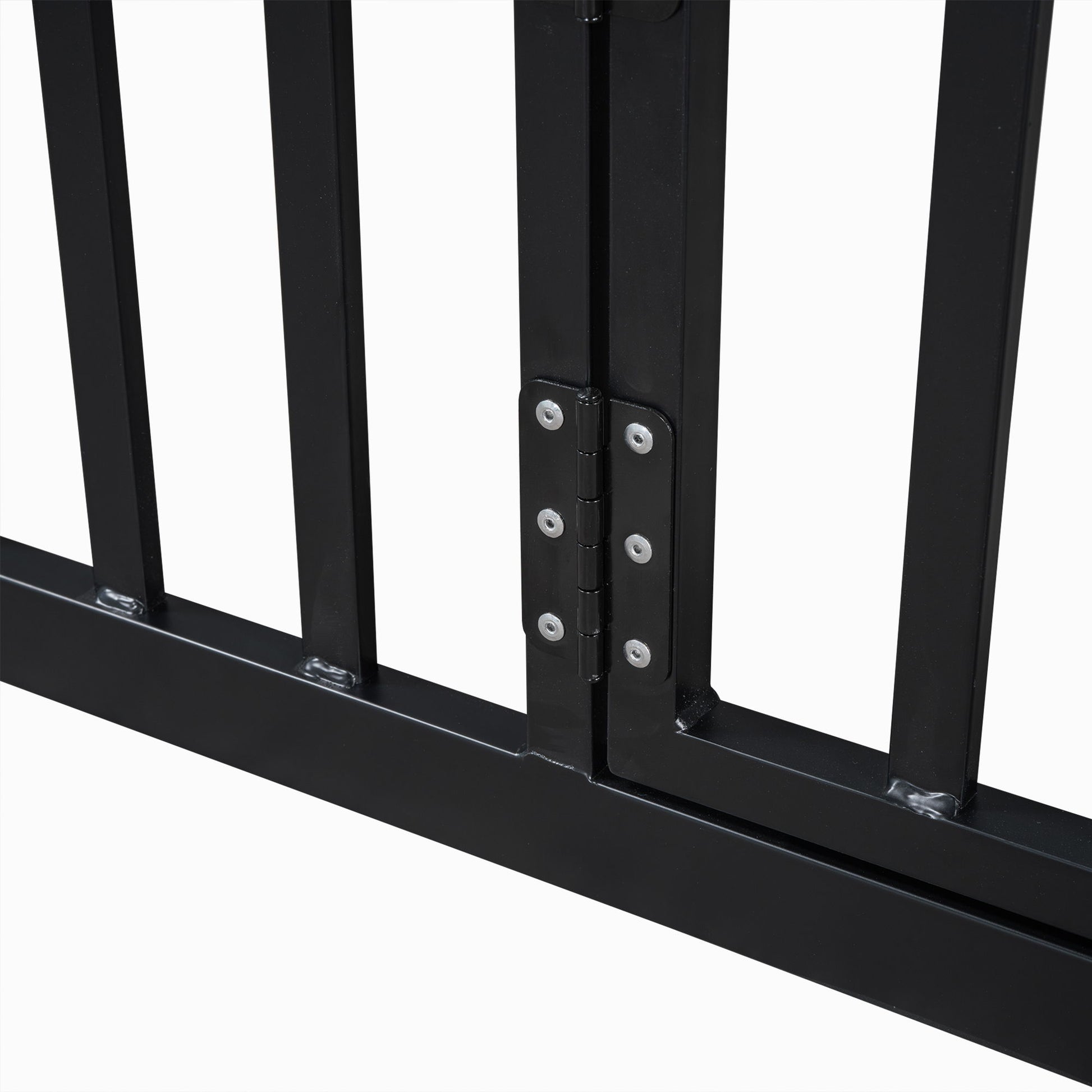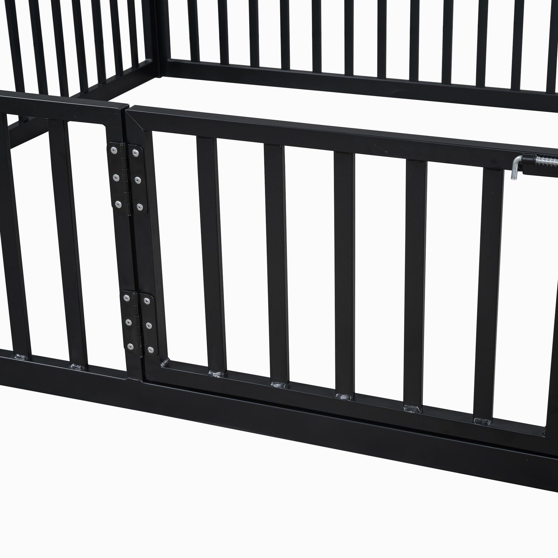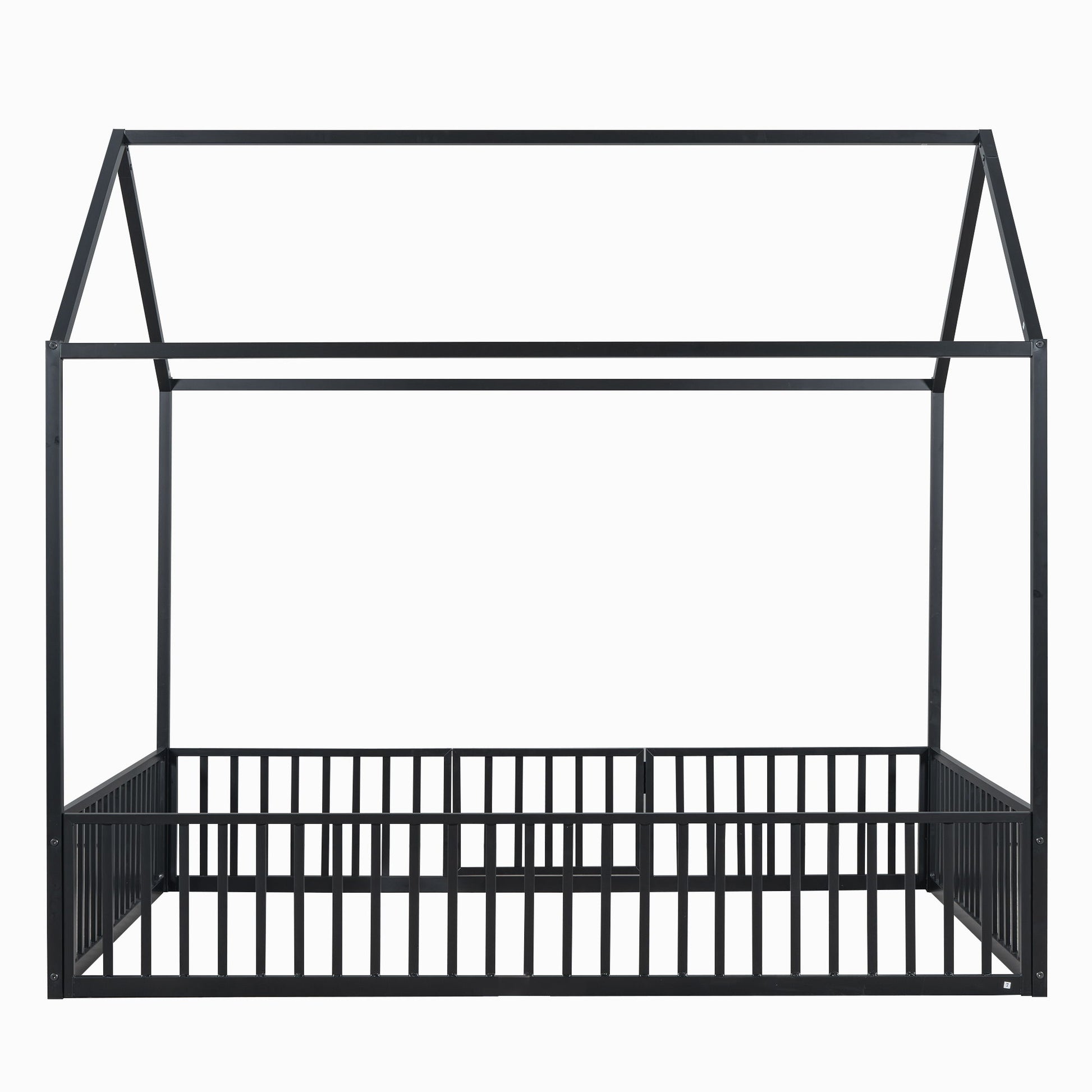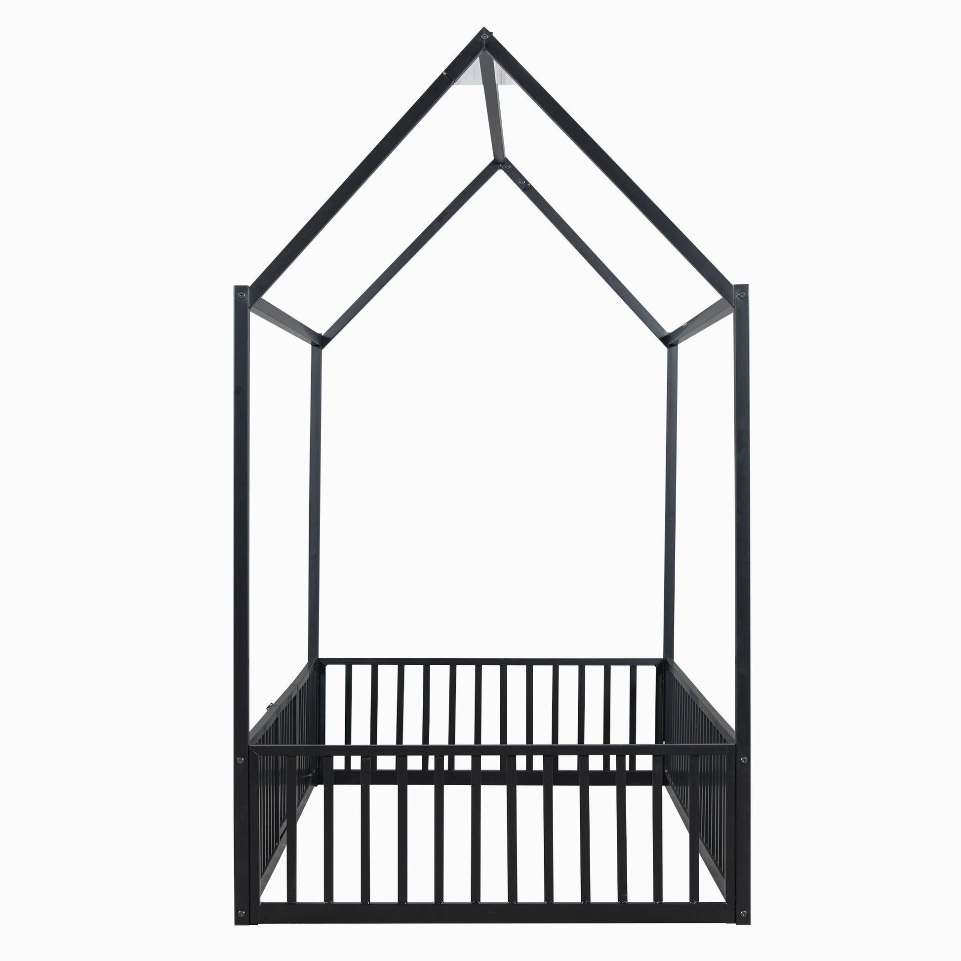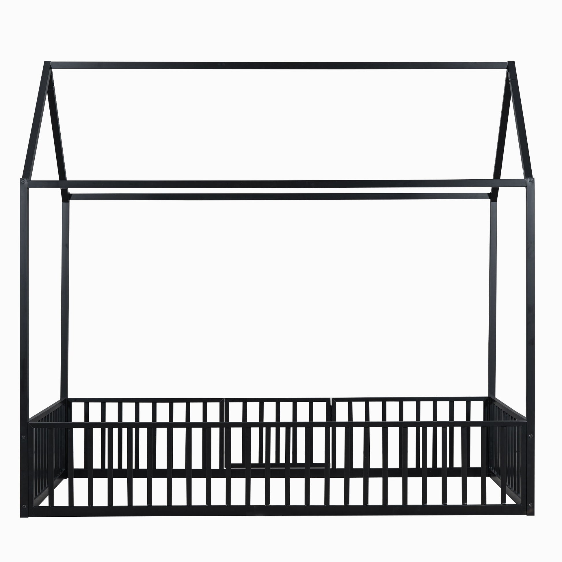 Full Size Metal House Bed With Fence And Door - Black