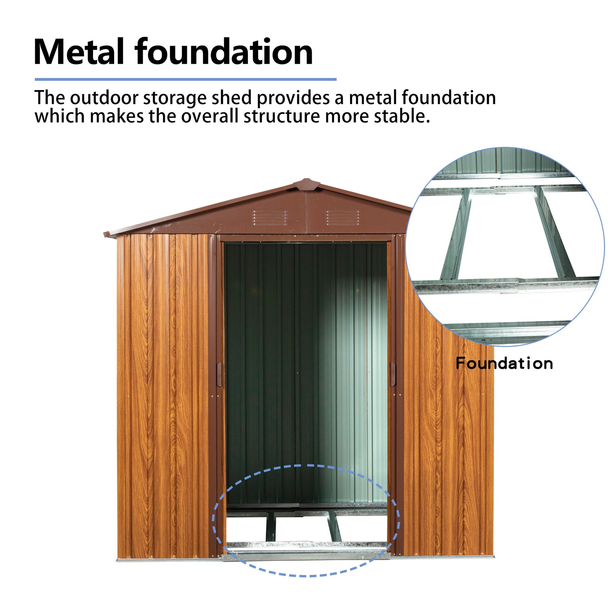 Metal Storage Shed Appealing Horizontal Siding In Woodgrain With Coffee Trim To Complement - Light Brown