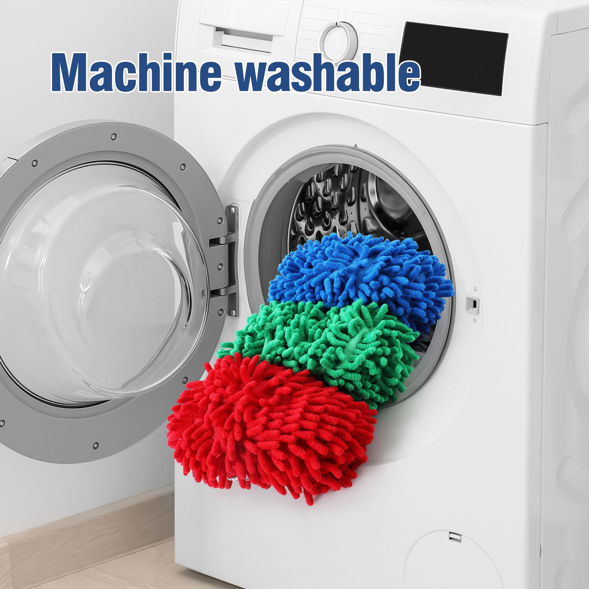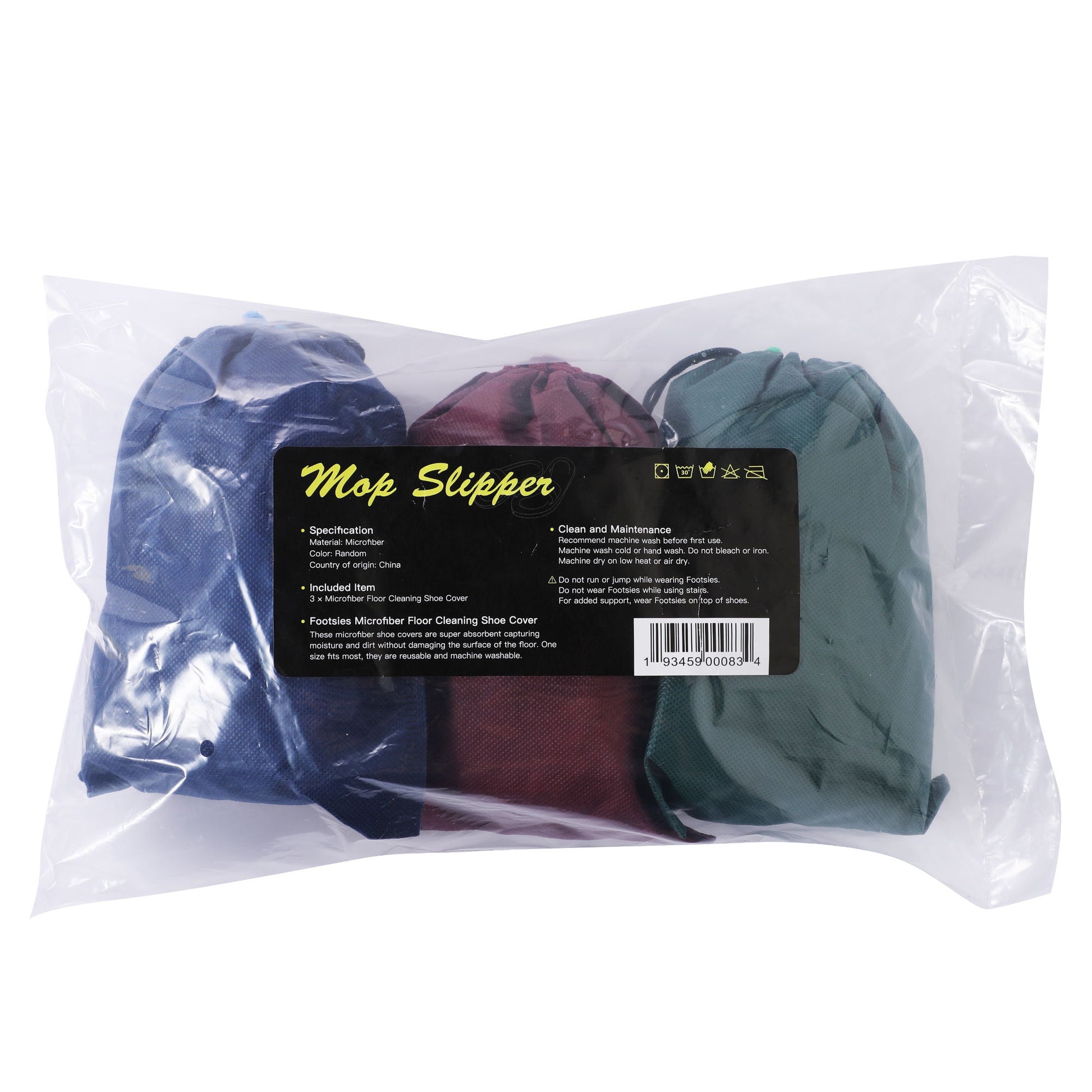 Microfiber Mop Slippers For Floor Cleaning, Machine Washable, 3 Pieces - Blue / Green / Red