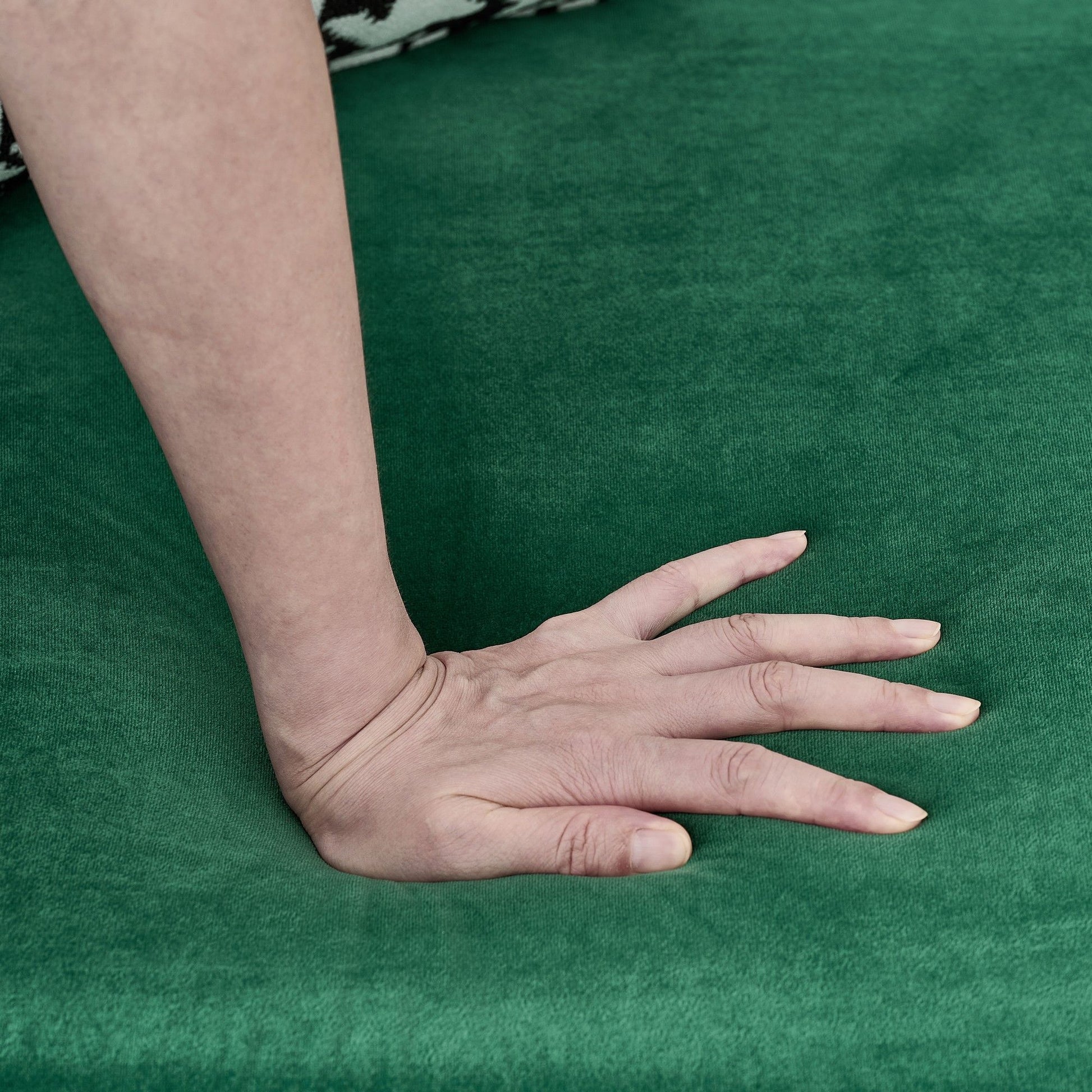 Mid Century Chesterfield Velvet Fabric Sofa With Roll Armrest & Nailhead, Green, 87 Inches