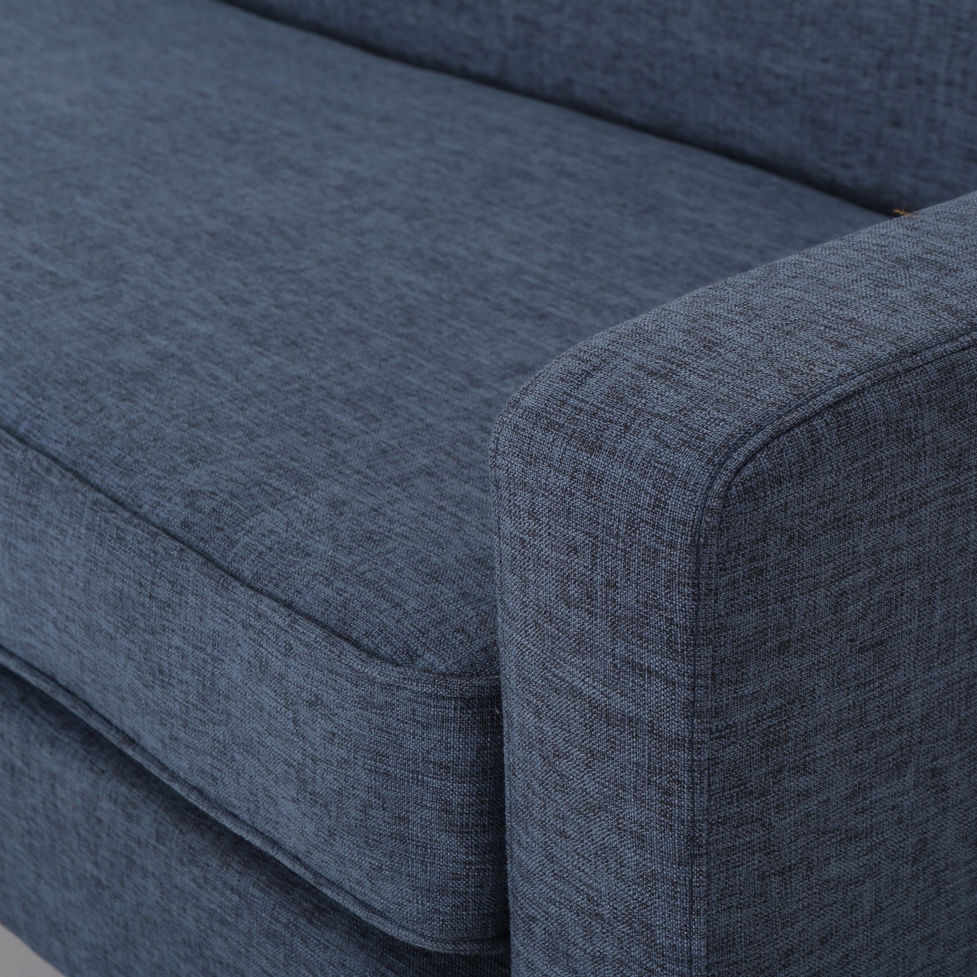 Mid Century Modern 3 Seater Sofa With Button Tufting - Dark Blue