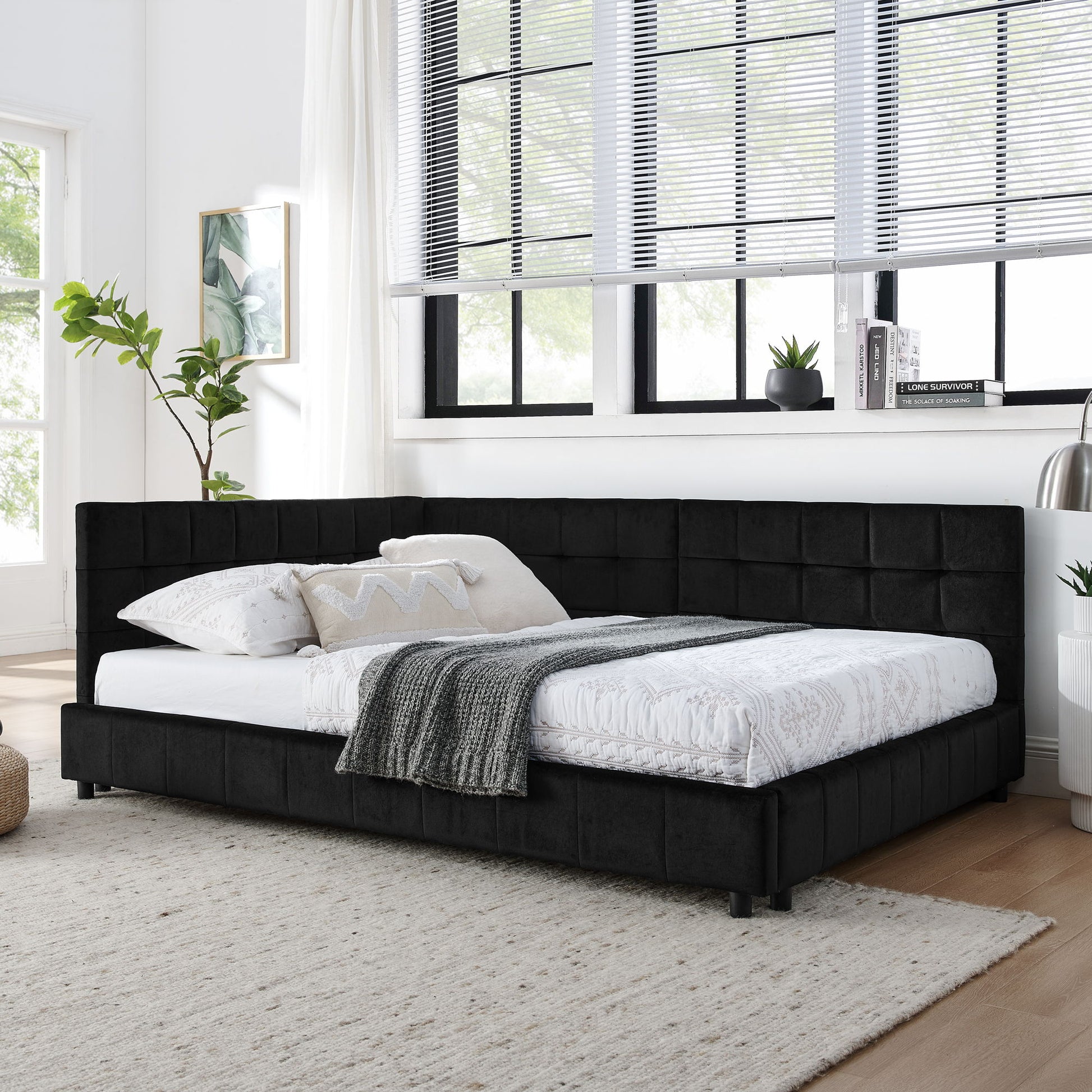 Mid-Century Storage Upholstered Tufted Bed Frame With Backrest And Armrests