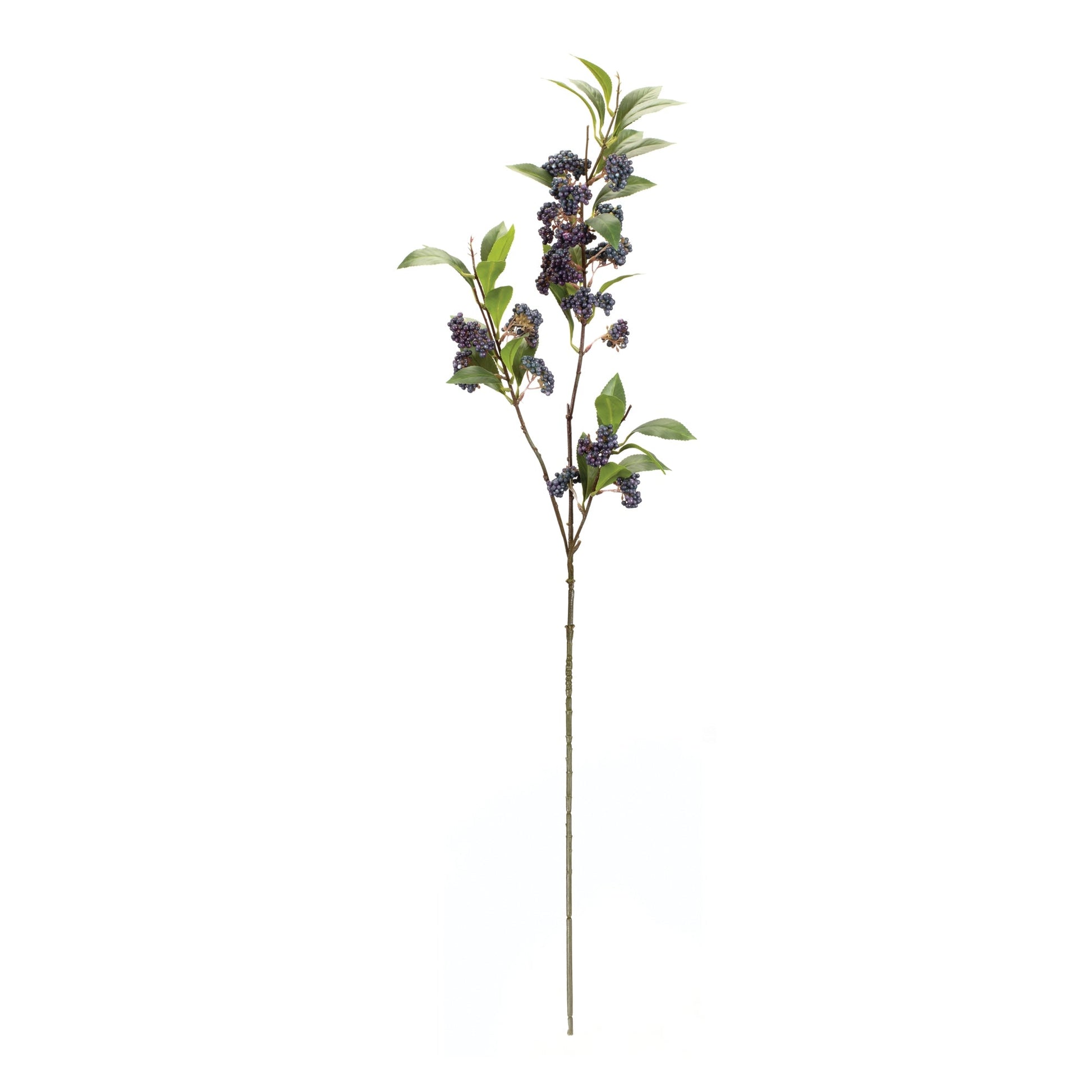 Add a touch of nature to your home with this beautiful set of Mini Berry Foliage Branches! Featuring two pieces, these gorgeous stems bring fresh look with earthy green tones and natural blue berry clusters, perfect for adding a natural pop of color to any room. Crafted from quality polyester fabric, plastic and iron wire, these stems will endure for years to come. Add the pieces to a floral vase, arrangement, or wall basket to share the beauty with your guests.