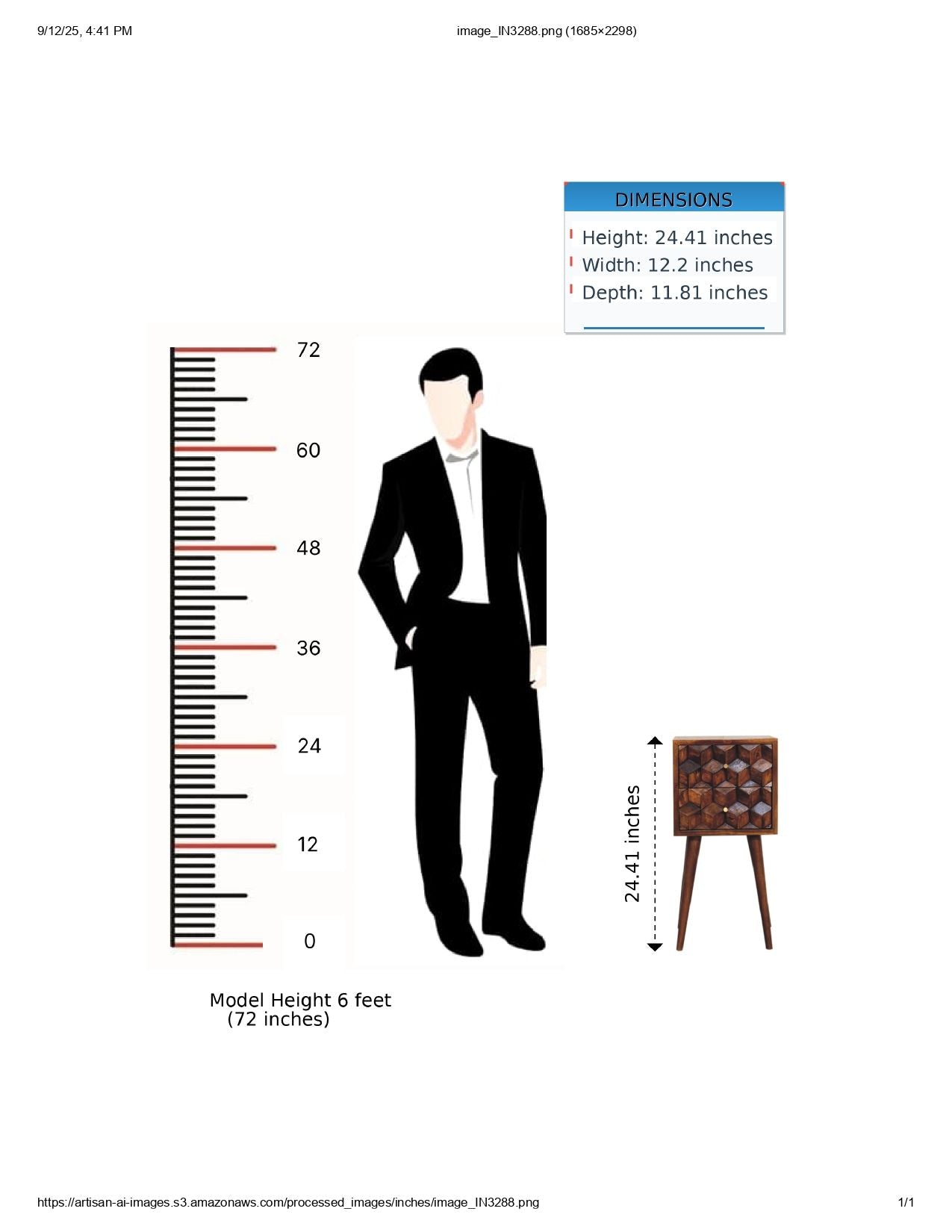 - Mini Cube Carved 2 Drawer Nightstand - This beautifully designed nightstand is constructed from 100% solid mango wood and has. It features 2 small cube carved drawers giving the piece extra character and dimension. It has 4 Scandinavian-style legs to modernize your home and can be fitted in tight compact spaces to go in any type of home interior.