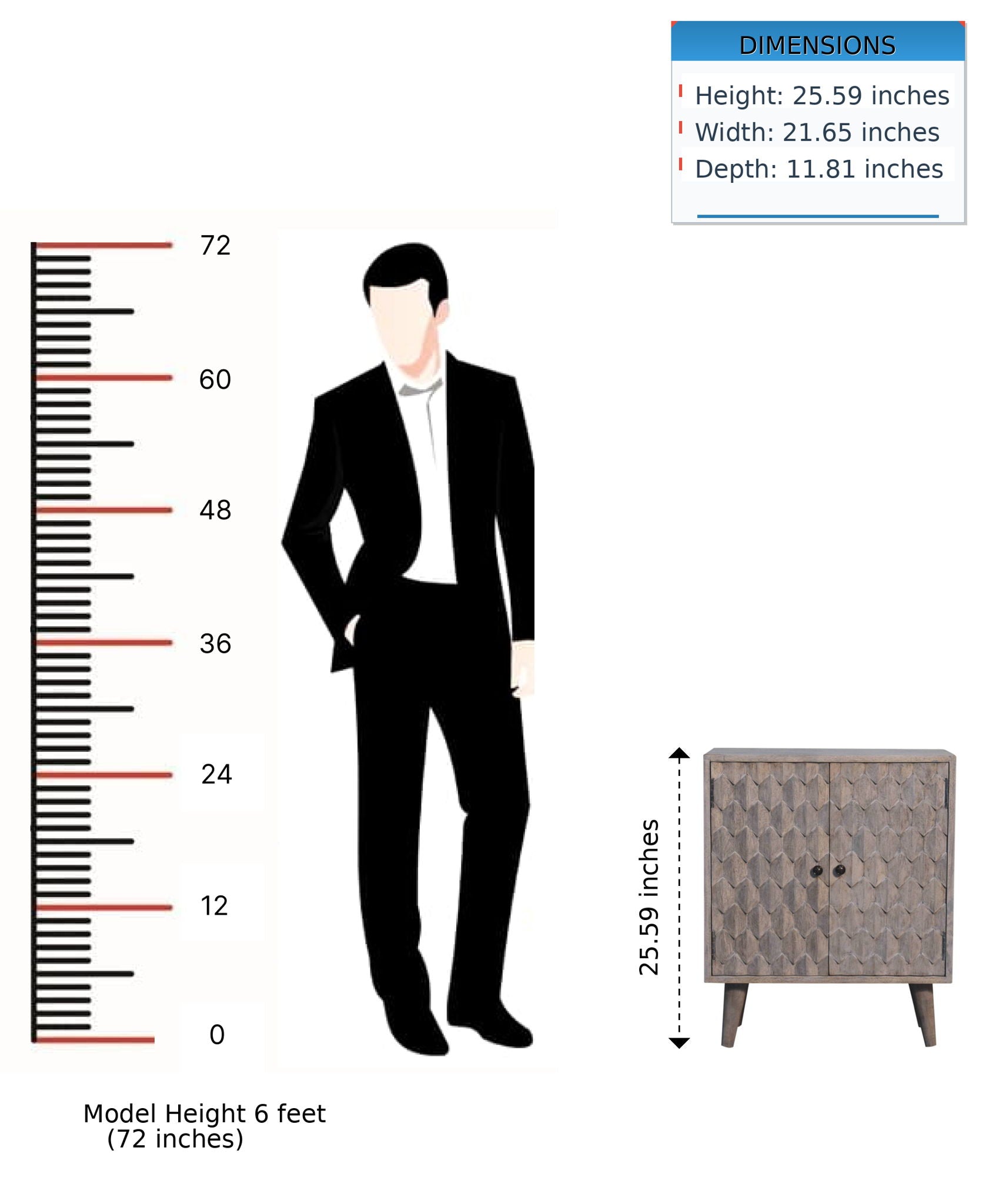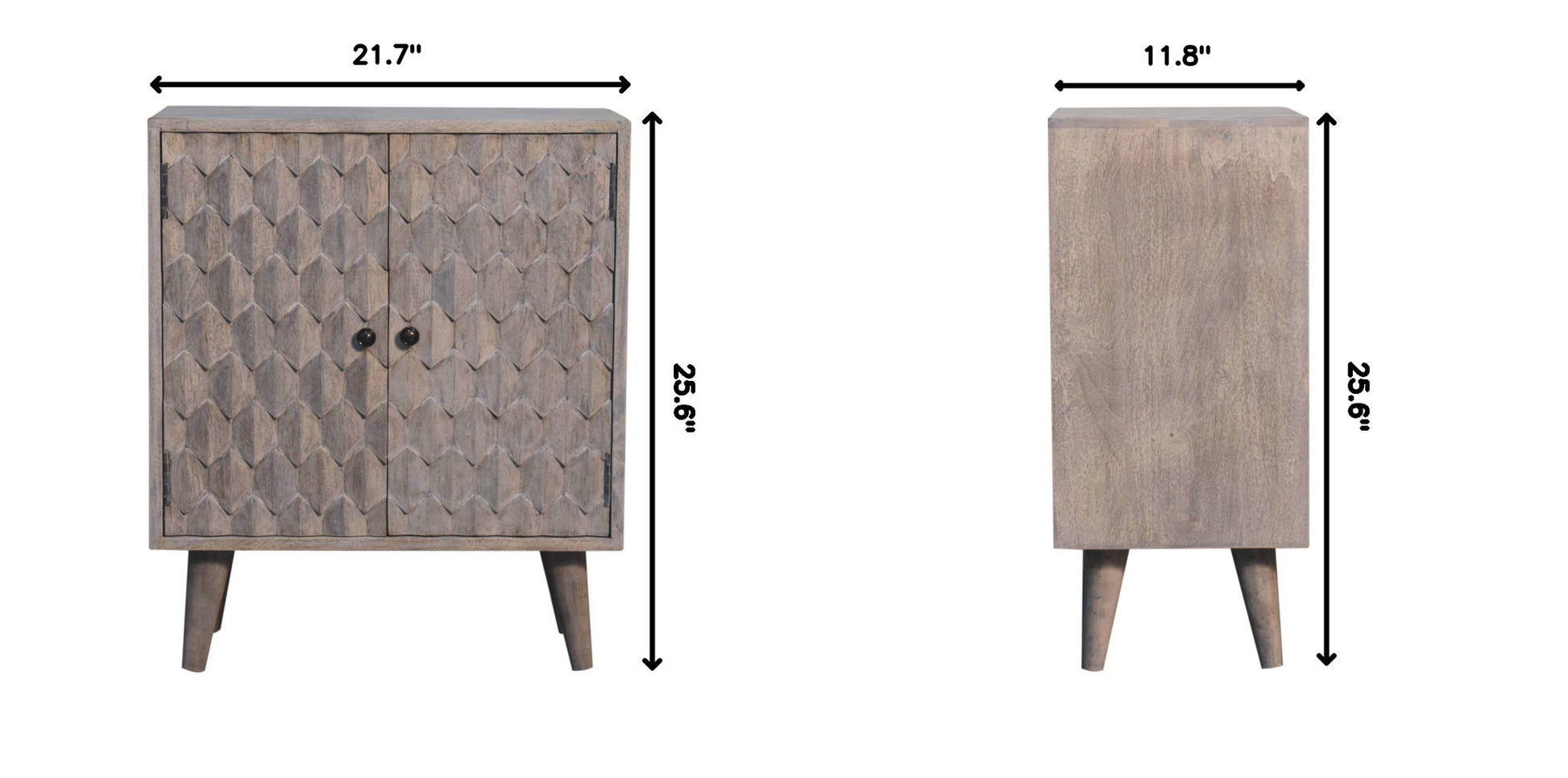 - Mini Pineapple Carved Cabinet - This mini cabinet has been constructed from 100% solid mango wood and has a fine stone finish. Its pineapple-carved design gives the product a unique twist and provides enough space with 2 doors that offer useful storage. Other features include shiny knobs and 4 Nordic style feet. This cabinet is the perfect addition to any home.