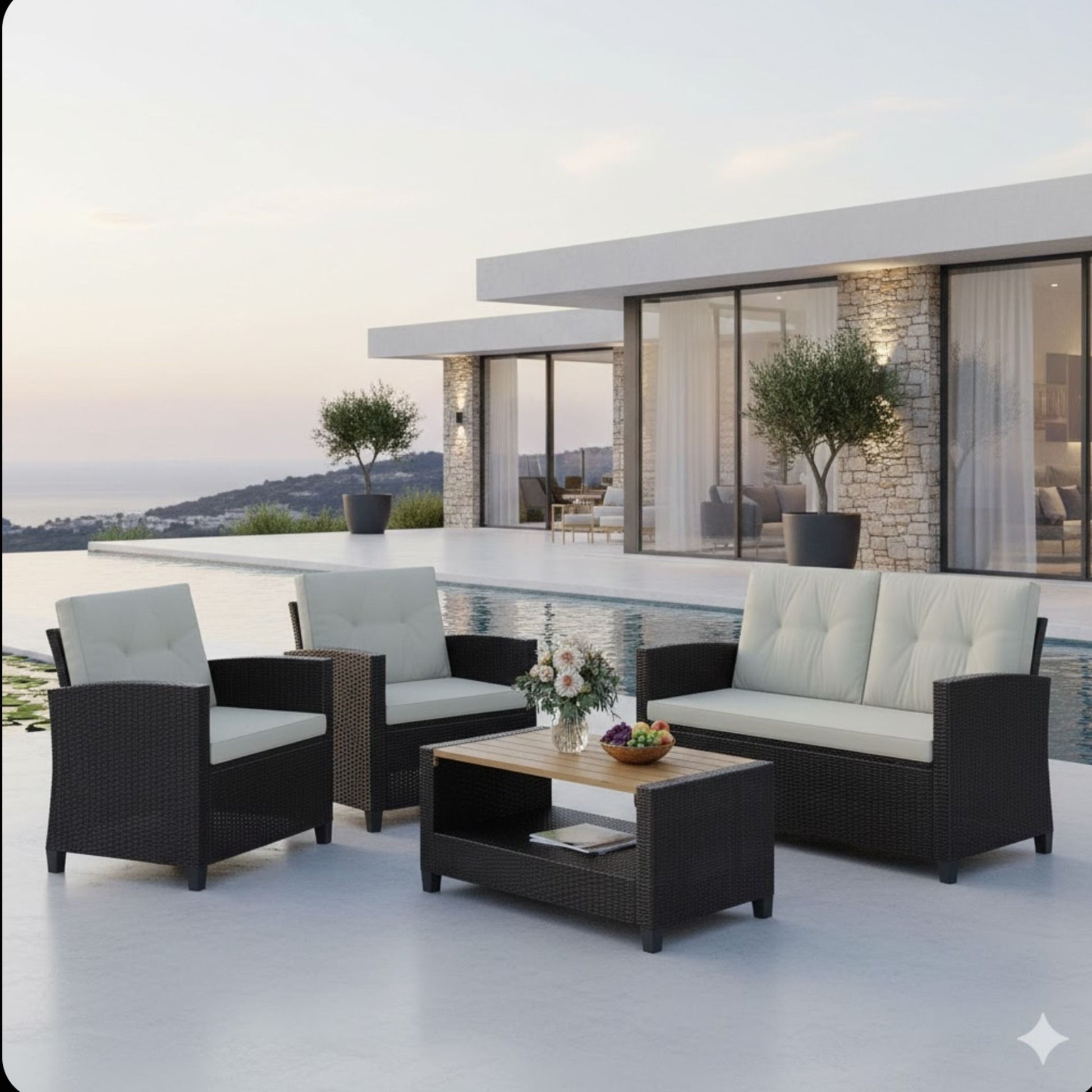 Modern All-Weather Patio Set With Cushions And Table