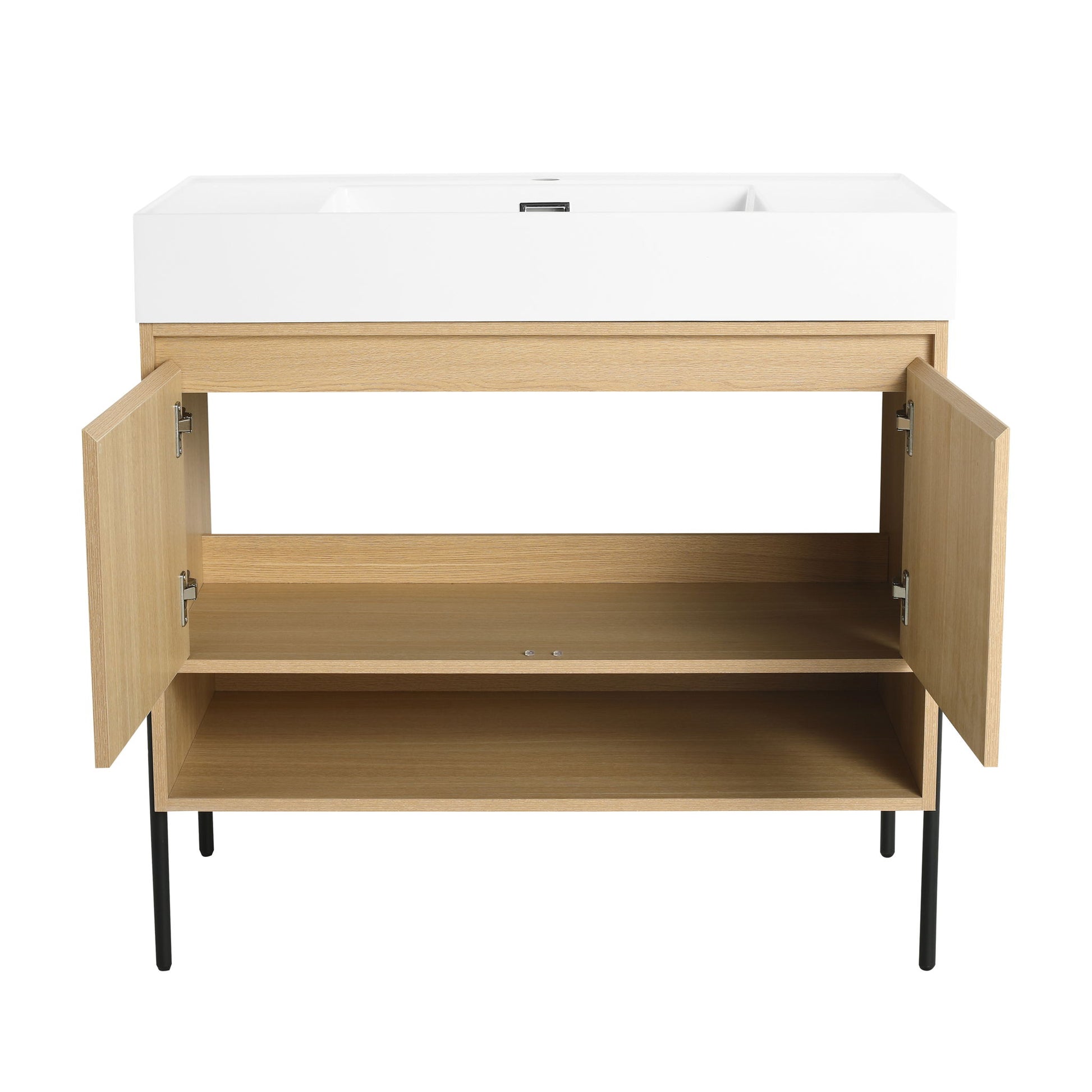 Modern Bathroom Vanity Combo With Single Resin Sink And Storage Cabinet, Multilayer Solid Wood - Oak