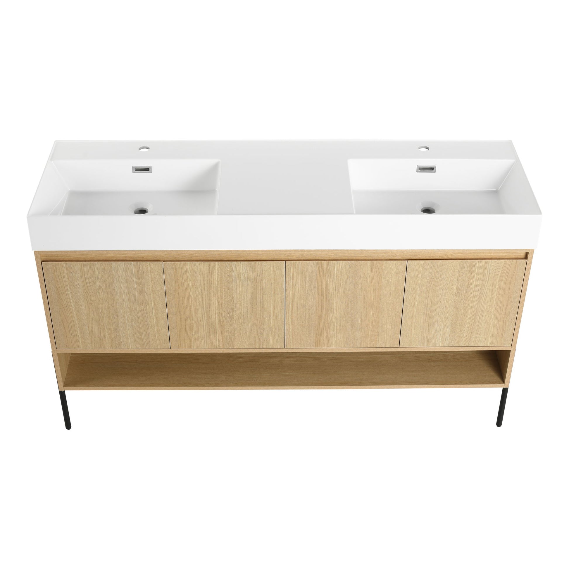 Modern 60" Bathroom Vanity Combo With Single Resin Sink And Storage Cabinet - Oak