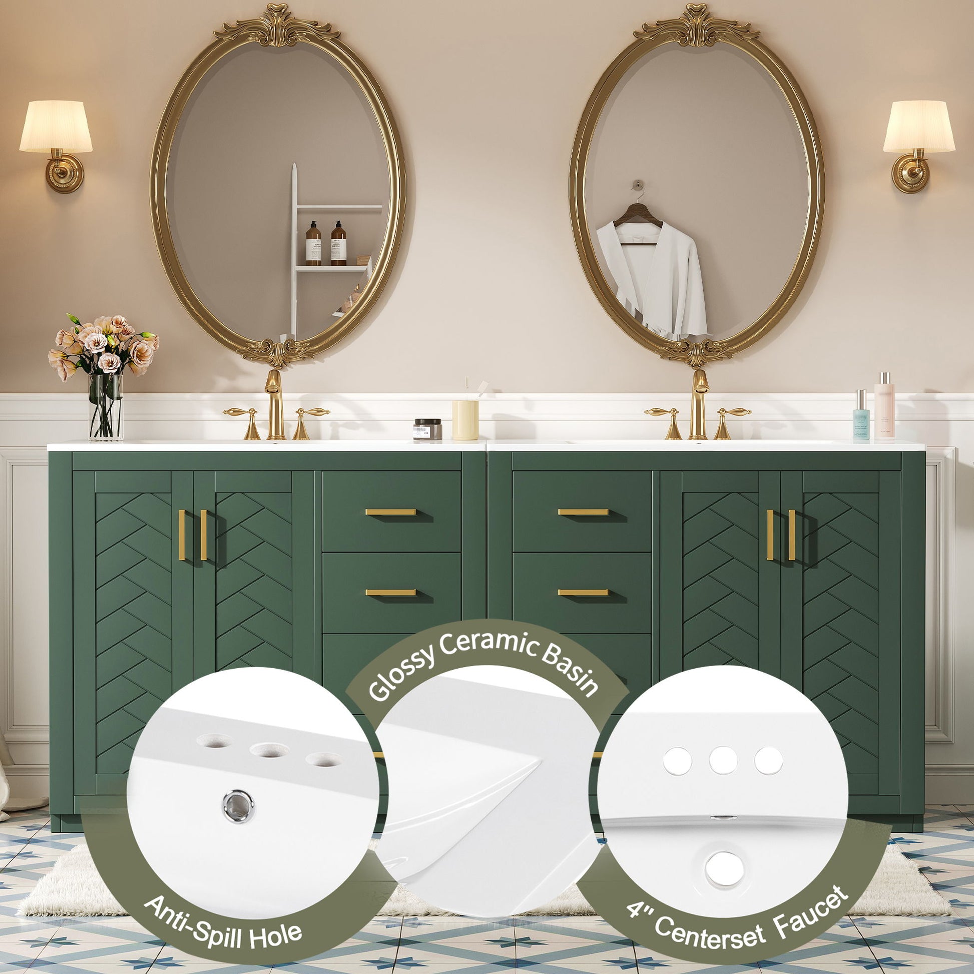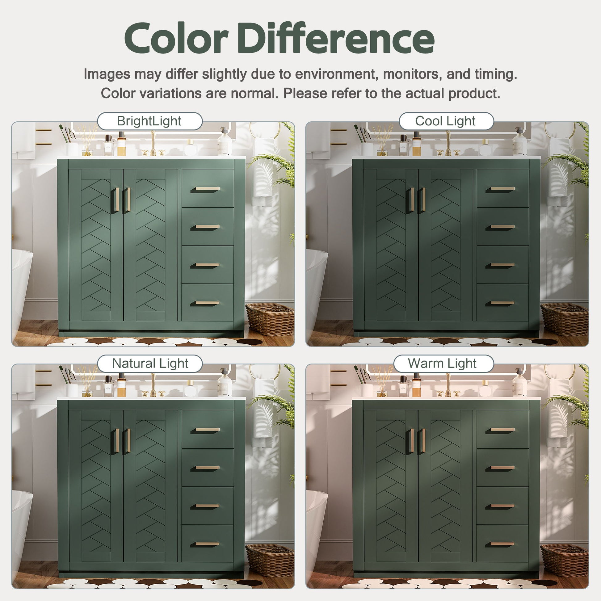 Bathroom Vanity With Sink, Storage Cabinet, Freestanding Set With 6 Drawers & Soft-Closing Doors - Green