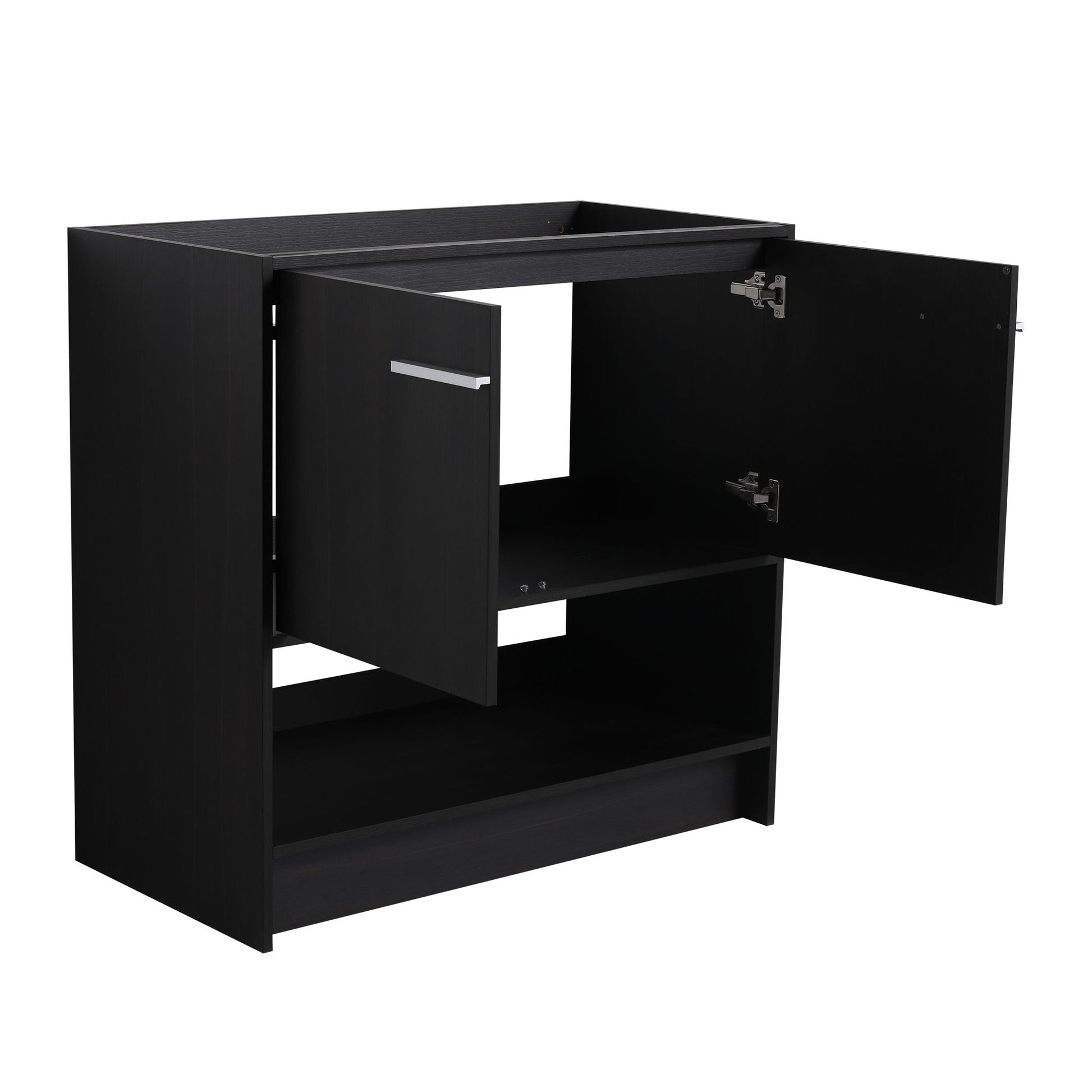 Modern 36" Bathroom Vanity With Ceramic Sink And Soft Closing Doors - Dark Oak