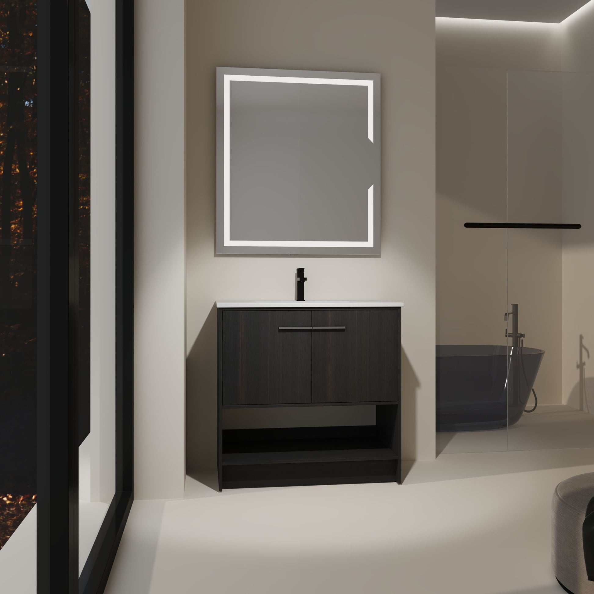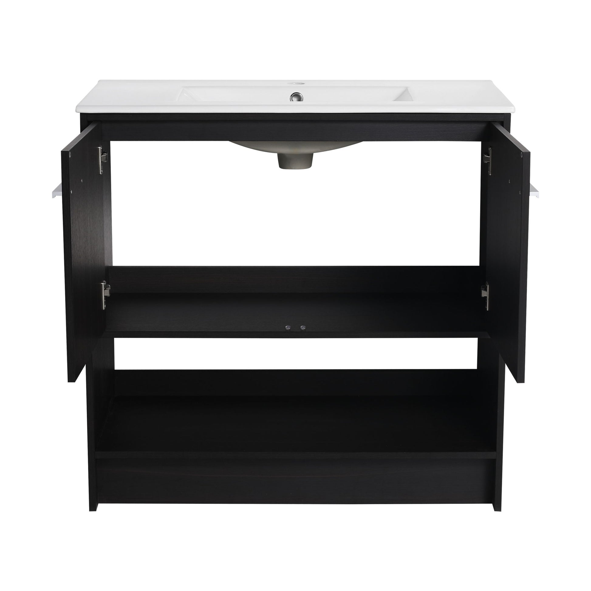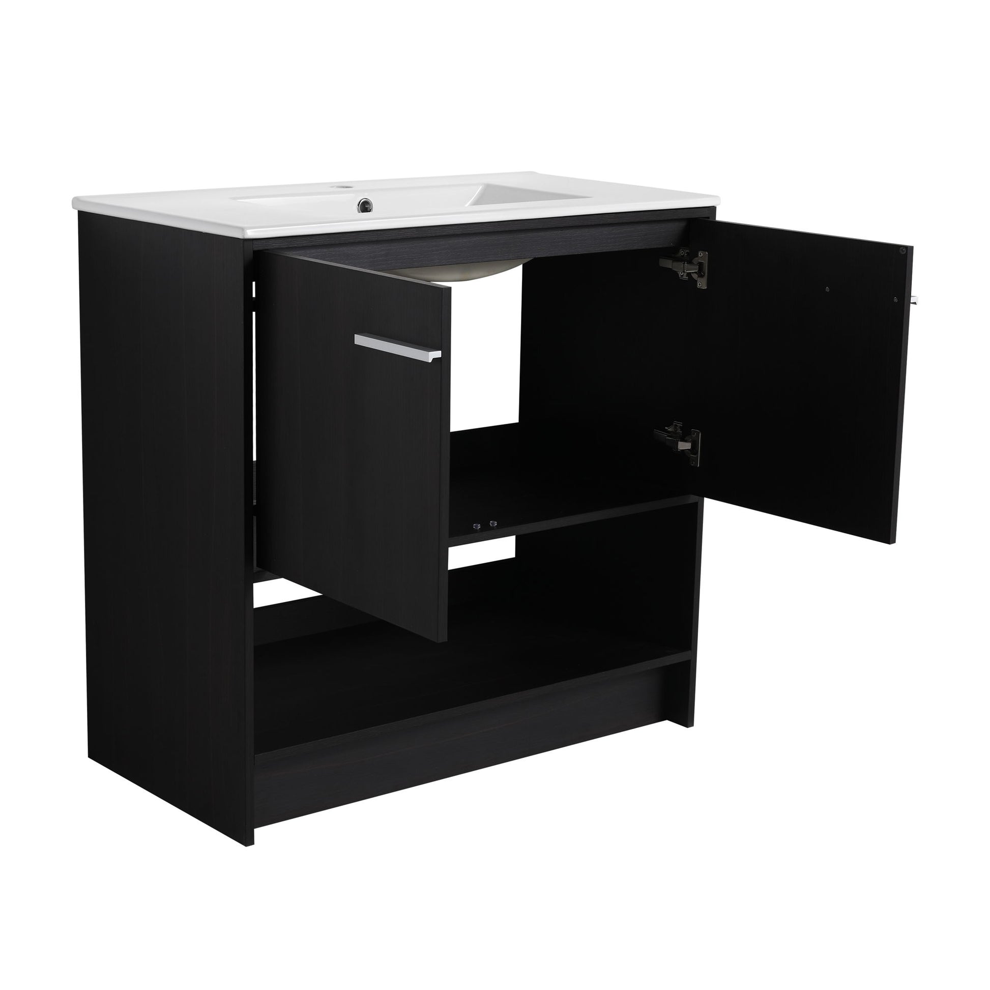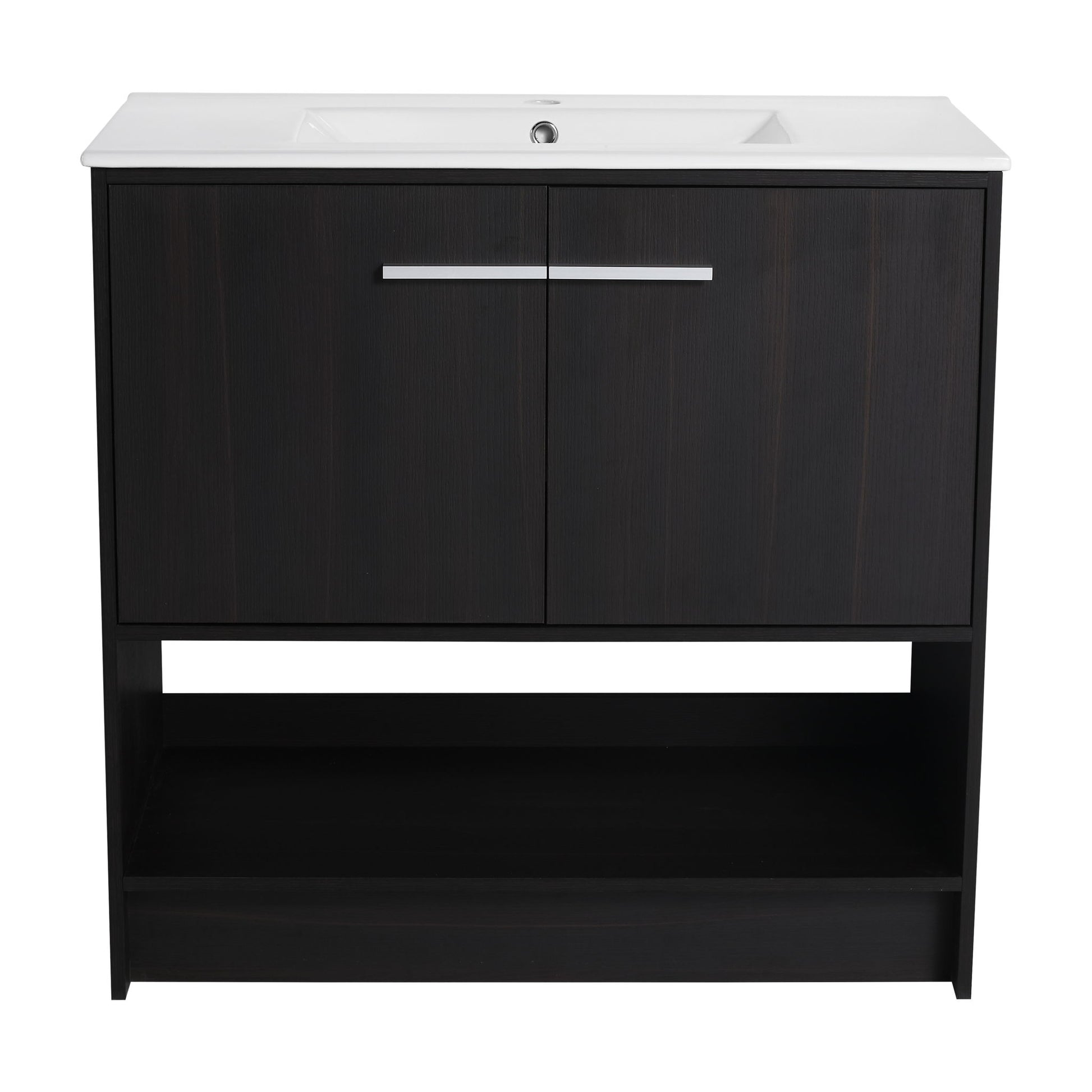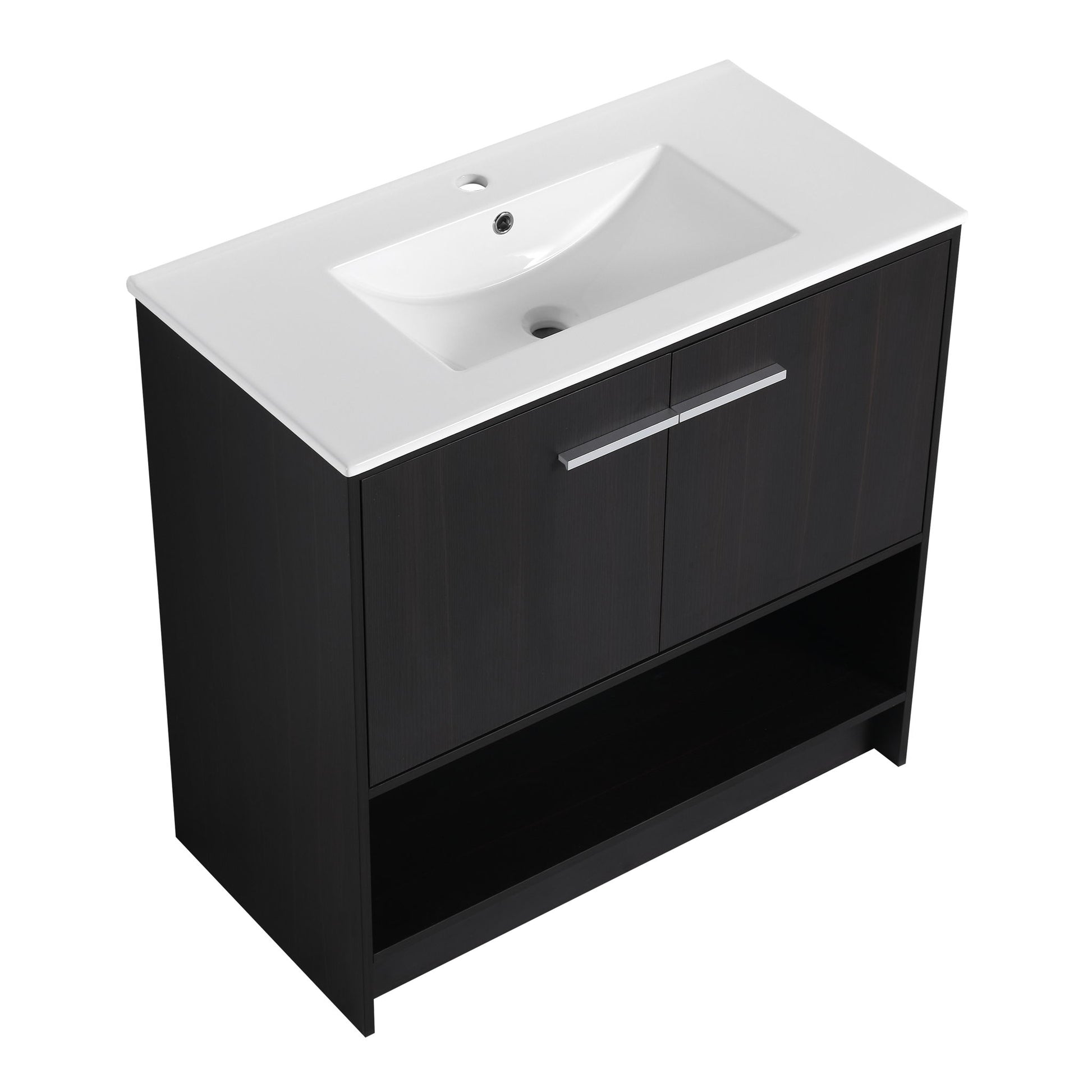 Modern 36" Bathroom Vanity With Ceramic Sink And Soft Closing Doors - Dark Oak