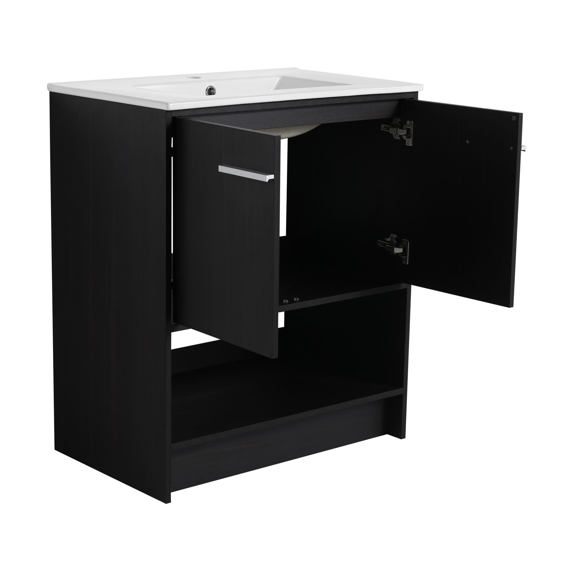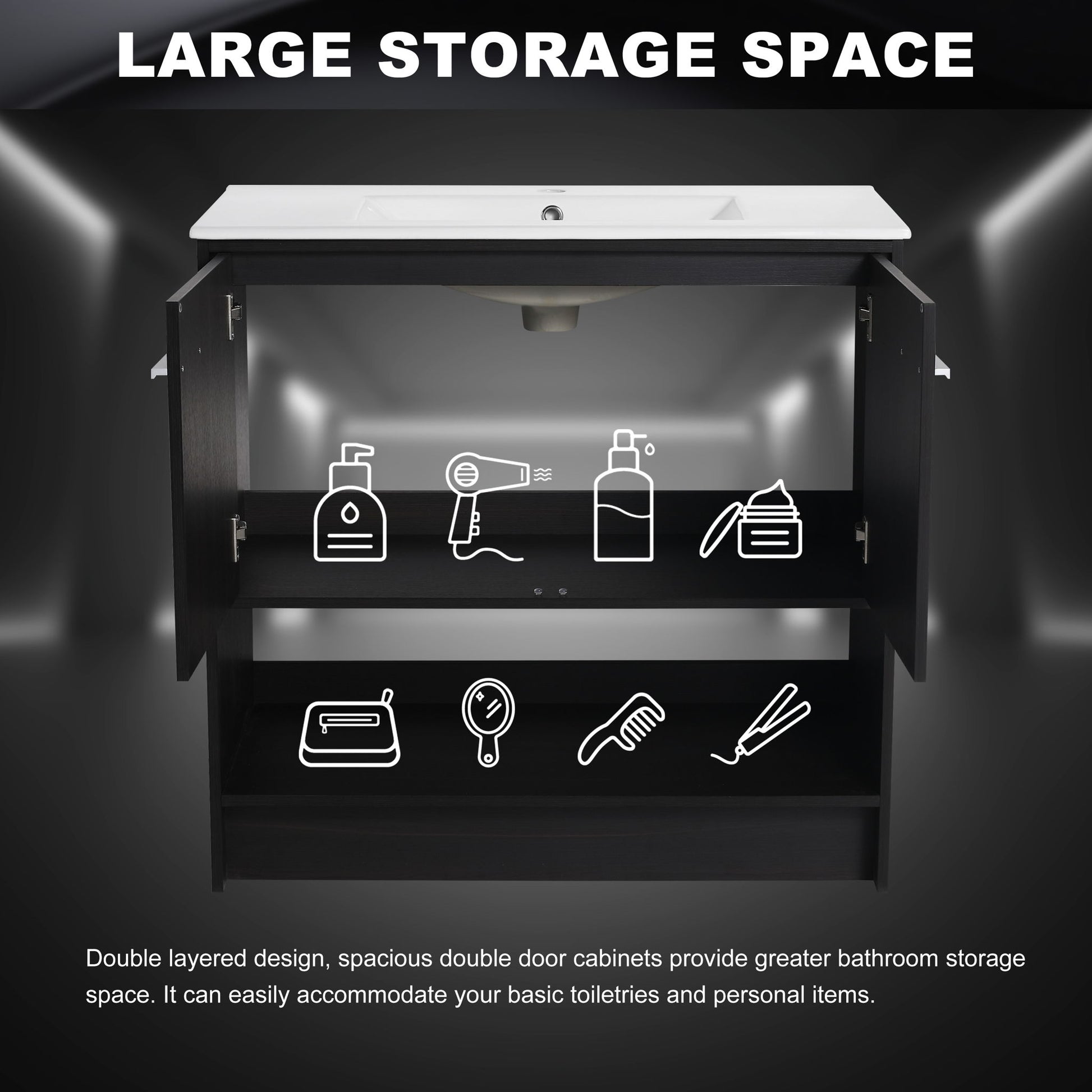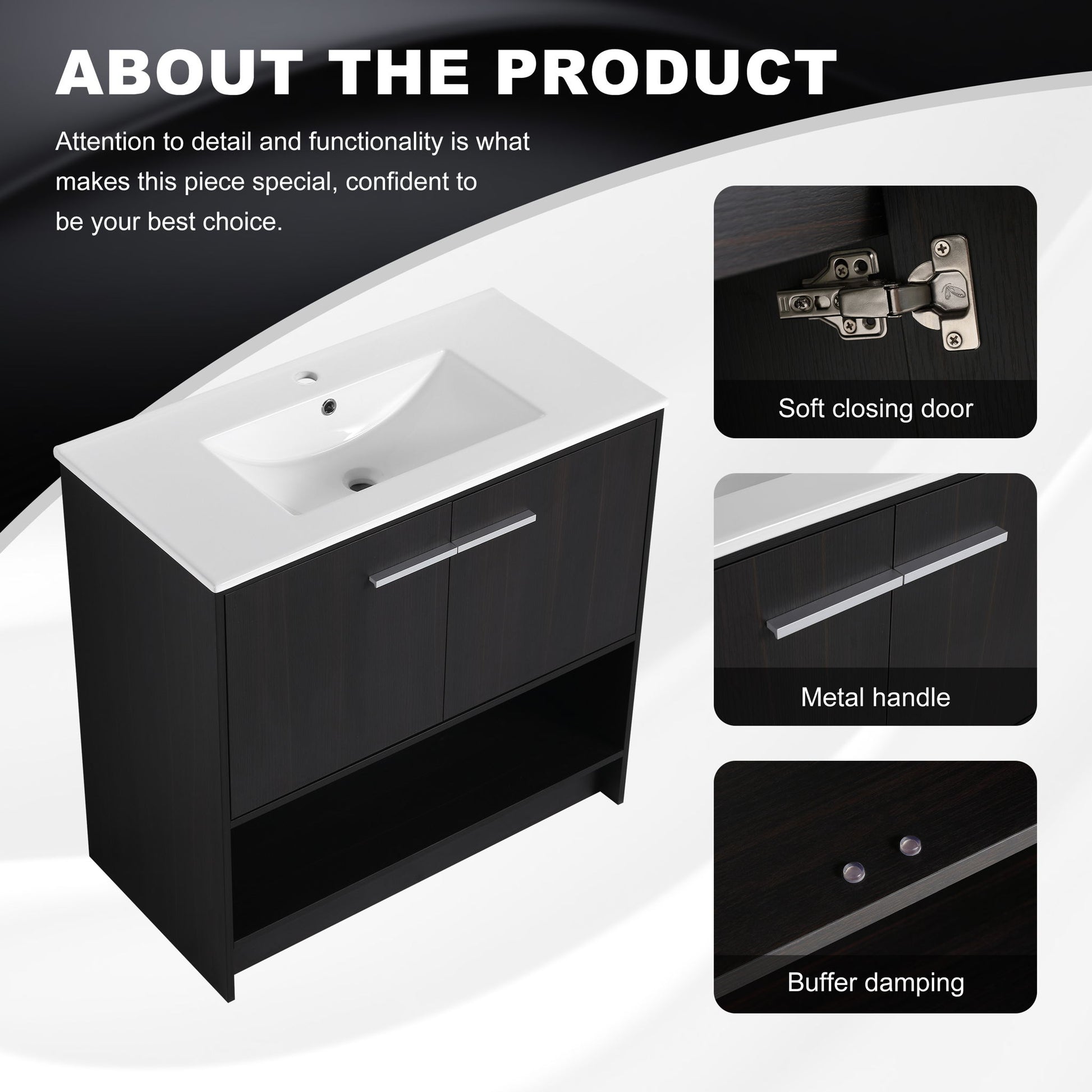 Modern Freestanding 30" Bathroom Vanity With Ceramic Sink, Soft Closing Doors Cabinet - Dark Oak