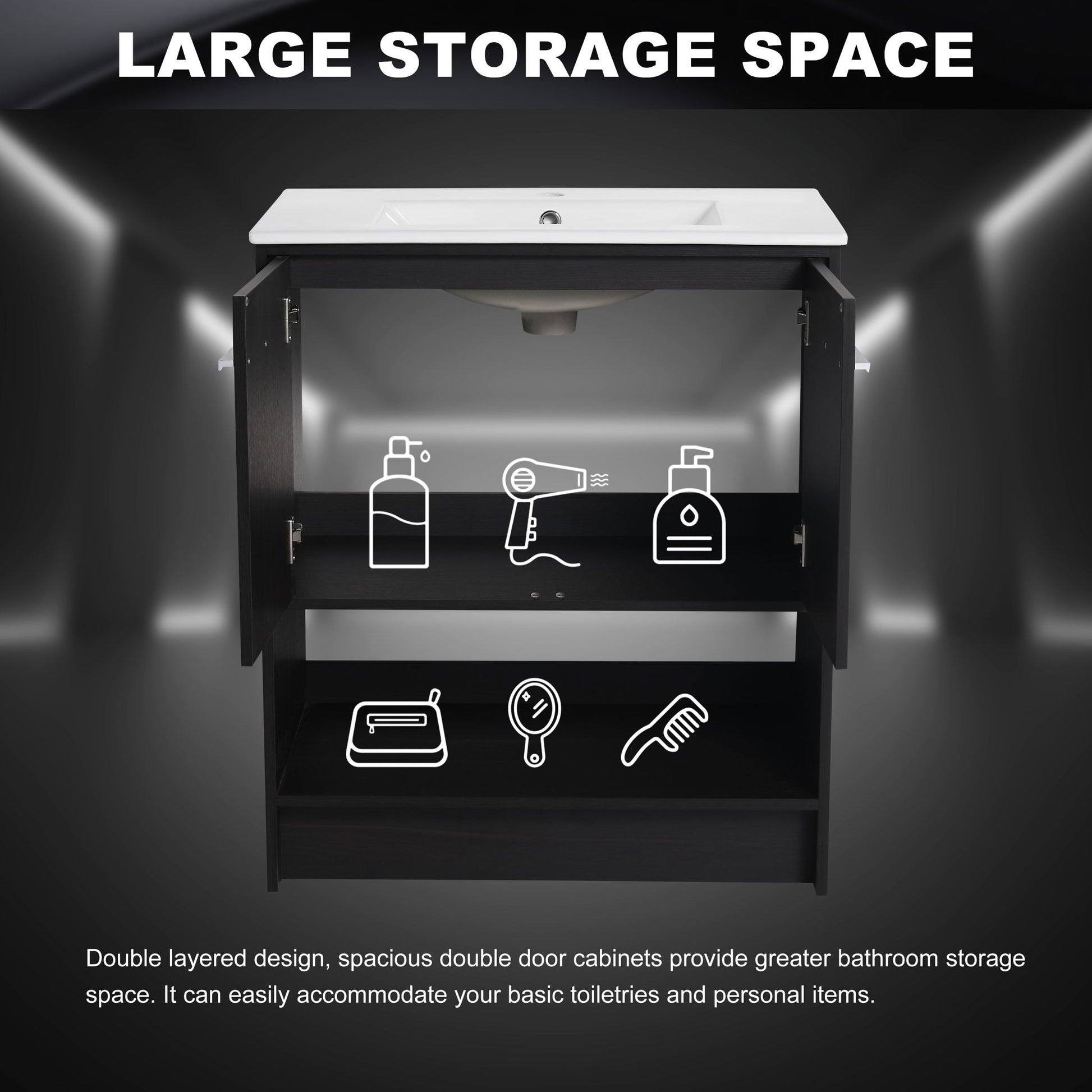 Modern Bathroom Vanity With Ceramic Sink, Freestanding Cabinet, Soft Closing Doors