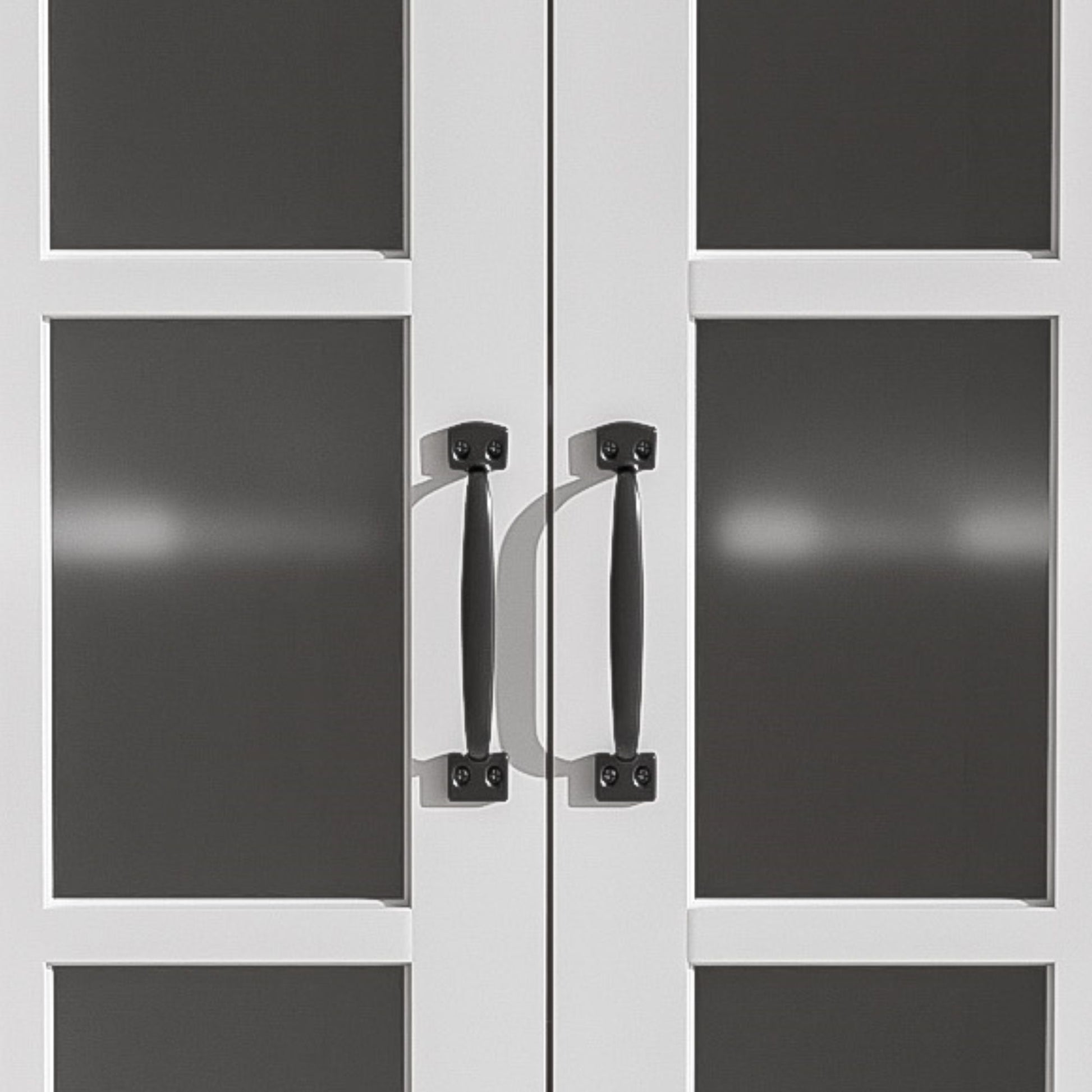 - Tempered Blurred Glass Doors: Safety-tempered glass provides durability and privacy while maintaining an airy, light-filled appearance. Moisture-Resistant Frame: Rubber wood construction withstands humidity, preventing warping and ensuring lasting stability.