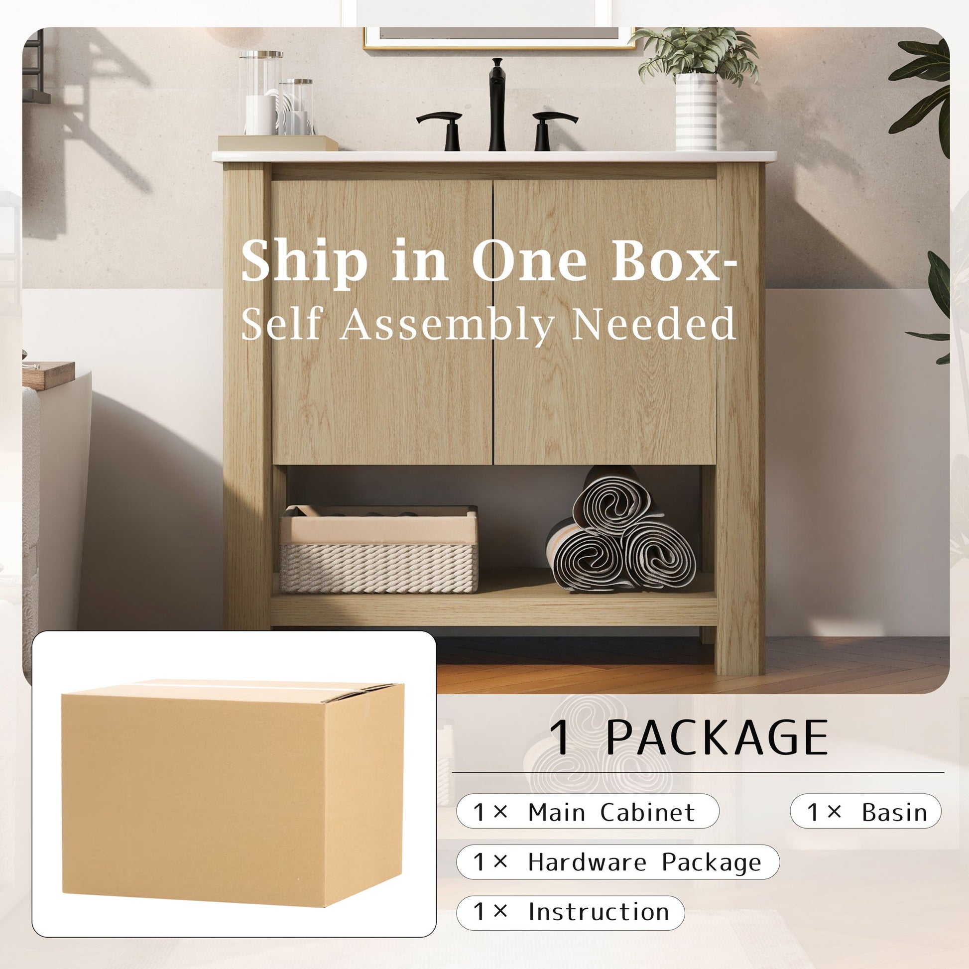 Bathroom Vanity With Rectangle Sink, Soft Closing Doors, Open Bottom Shelf - Antique Natural