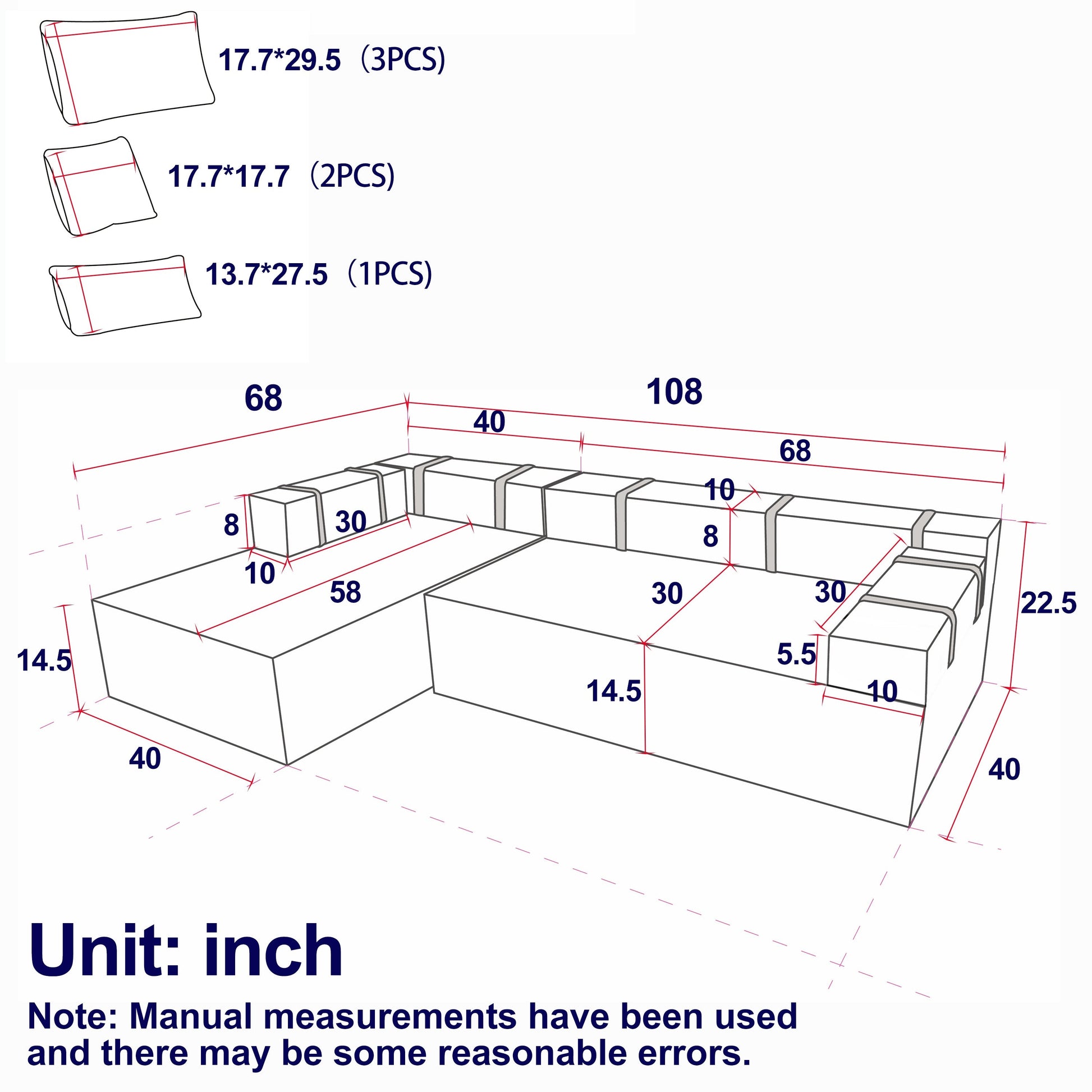 17.7" x 29.5" (3 pieces), 17.7" x 17.7" (2 pieces), 13.7" x 27.5" (1 piece)