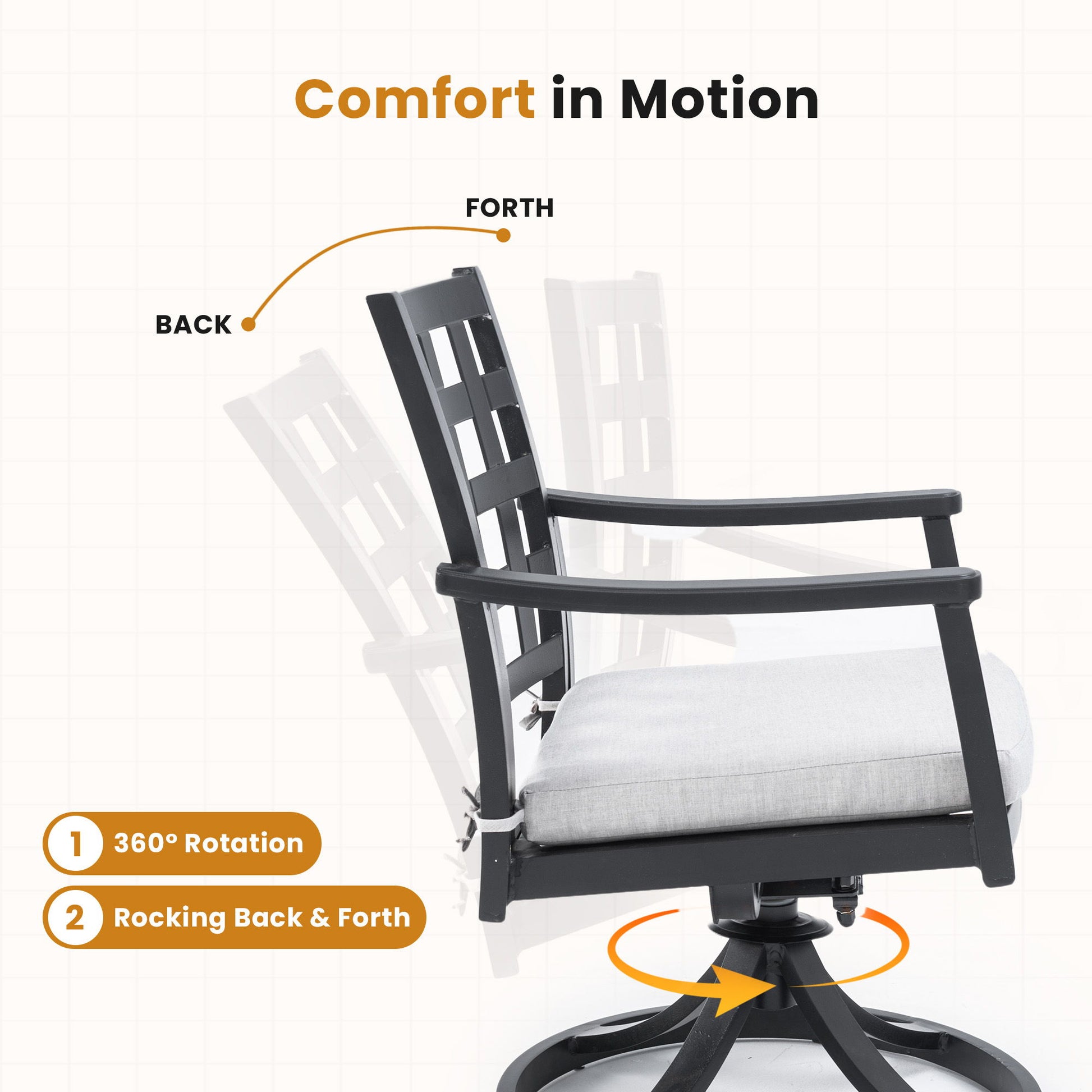 5 Pieces Outdoor Patio Dining Set, Rectangular Table & 4 Swivel Rock Dining Chairs With Sunbrella Cushion - Ember Black