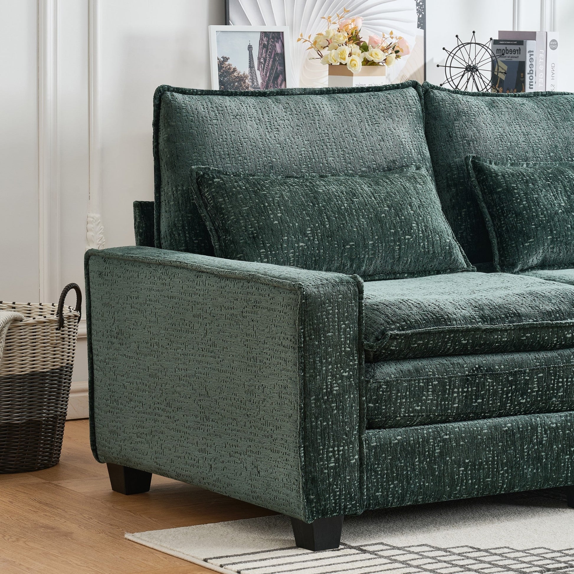 - Plush Chenille fabric upholstery with stain-resistant and pet-friendly properties