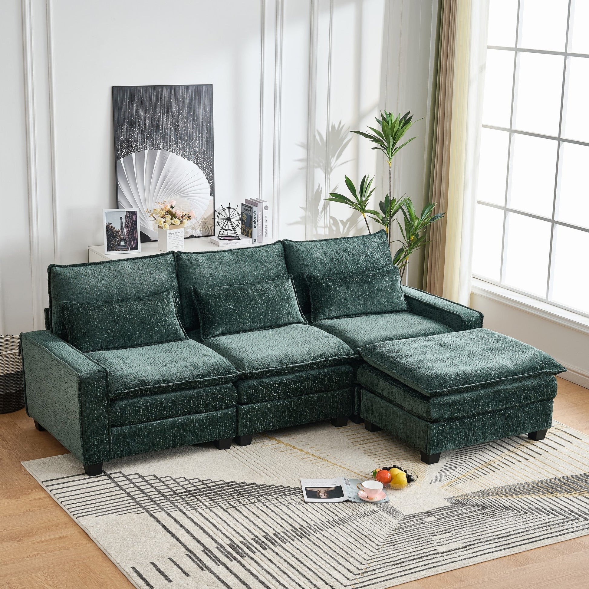 Modern Comfy Chenille L Shaped Sectional Sofa with Movable Ottoman